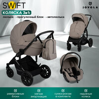 Купить Коляска для новорожденных 3 в 1 Jovola Swift универсальная, всесезонная с автолюлькой, бежевый с доставкой по всей России.