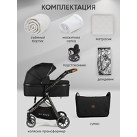 | Комплектация | адаптеры для крепления автокресла, антимоскитная сетка, держатель для бутылочки, дождевик, капюшон, матрас, муфта для рук, накидка на ноги, подстаканник, рюкзак, солнцезащитный козырек, сумка |