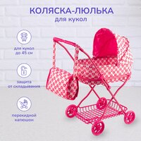 Металлический каркас. В комплекте с коляской для кукол сумочка для мелочей, которая крепится на ручке. Для перевозки более крупных предметов есть корзинка под люлькой. Маленькая копия настоящей коляски для куклы. Яркая прогулочная детская коляска для кукол станет отличным дополнением для игр ребенка. Игрушечная коляска для кукол выполнена из практичных материалов: каркас сделан из облегченного металла, что делает конструкцию прочной и устойчивой к повреждениям. Достаточно легкий вес детской коляски для кукол позволяет играть с ней и дома и брать с собой на улицу. Теперь примерять на себя роль мамы и играть с куклами станет еще интереснее!