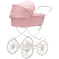 Коляска-люлька оснащена четырьмя большими прорезиненными колесами со спицами на рессорах, что обеспечивает плавность хода и устойчивость на различных поверхностях.