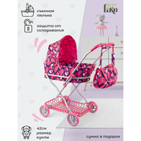 Легкая складная коляска-люлька для кукол очень компактна, удобна в эксплуатации и комфортабельна. Рама коляски сделана из облегченного металла, ручка покрыта прорезиненным материалом. Для большего удобства у коляски имеется поддон и симпатичная сумочка, в которую можно сложить все необходимые вещи и игрушки.