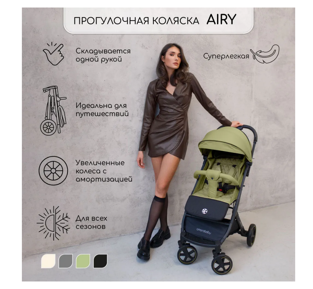 Коляска прогулочная Amarobaby Airy, Оливковый: сравнение цен, характеристики, фото, актуальное наличие и цены.