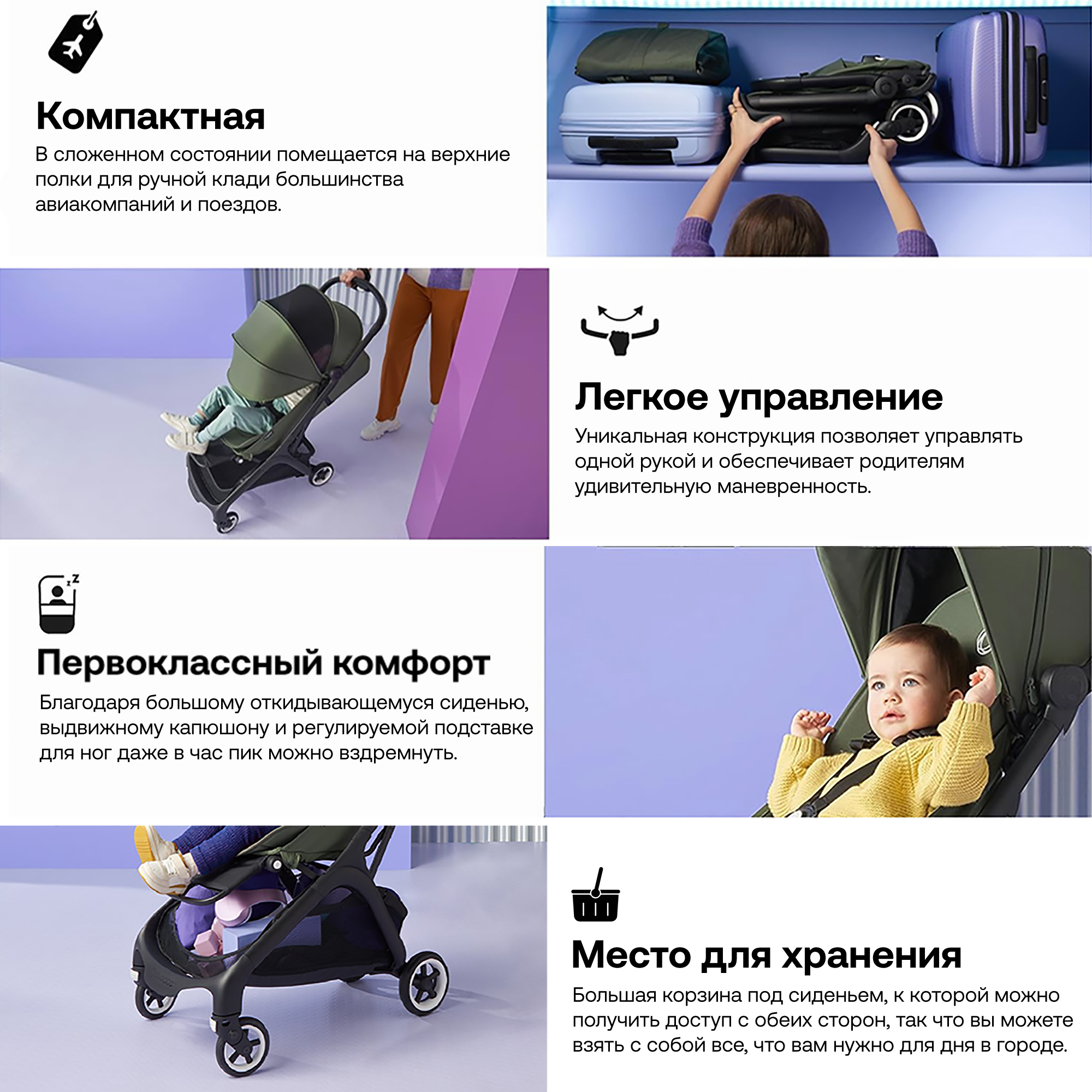 Коляска прогулочная Bugaboo Butterfly – новая облегченная коляска с прогулочным сидением для детей старше 6 месяцев получила красивое летнее название «Butterfly», что в переводе с английского языка означает «Бабочка». Собранная коляска с аксессуарами весит всего 7,3 кг! Плюс, сложить коляску не составит труда. Рама с сидением складывается настолько компактно, что ее можно хранить на верхних багажных полках, перевозить в багажнике автомобиля, в общественном транспорте, даже в узком проходе она не помешает пассажирам. А входящий в комплект ремень позволяет переносить коляску на плече. Под сидением расположена вместительная текстильная корзина для покупок и детских игрушек. Широкое комфортное сидение выдержит вес ребенка примерно 4-х лет (до 22 кг). Спинка сидения регулируется и опускается вниз для сна и отдыха. Для удобства отдыха подножка также регулируется в 5-ти позициях. Расширяющийся капор с сетчатым окошком подарит прохладу и тень в жару, а в холода закроет от осадков и сквозняков. Колеса с амортизацией делают ход коляски тихим и плавным, чтобы ничто не побеспокоило Вашего кроху. Дополнительно к входящим в комплект пятиточечным ремням можно приобрести съемный бампер, который еще лучше защищает ребенка от падений и травм.