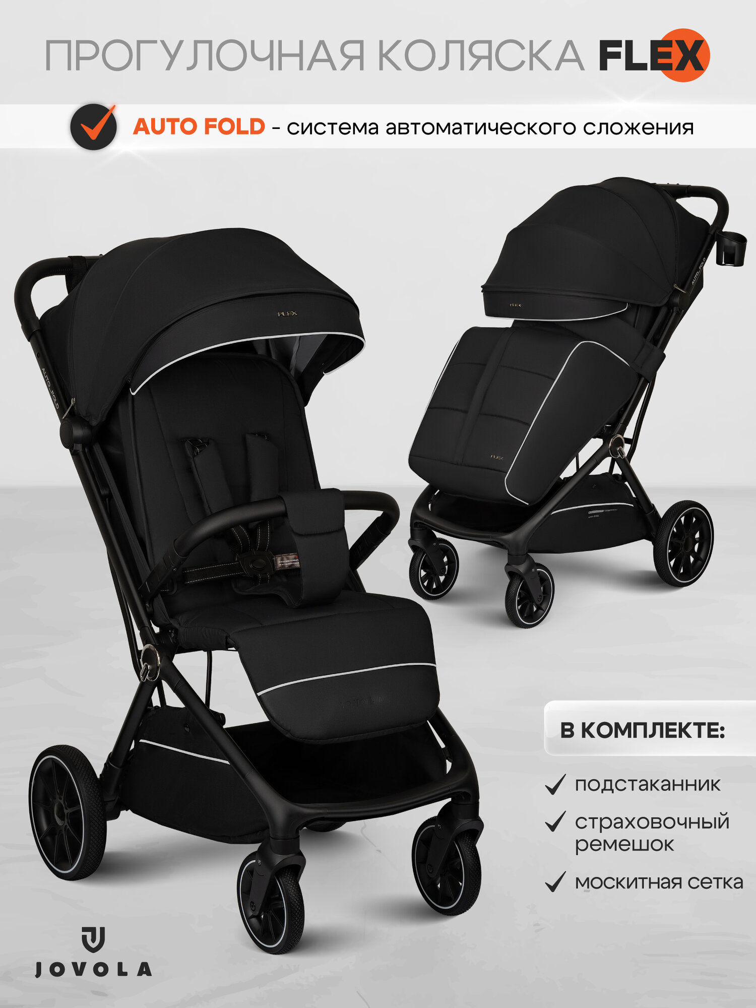 Купить Коляска прогулочная детская Jovola Flex легкая, с автосложением и ручкой для транспортировки, черный с доставкой по всей России. Коляска прогулочная детская Jovola Flex легкая, с автосложением и ручкой для транспортировки, черный: сравнение цен, характеристики, фото, актуальное наличие и цены.