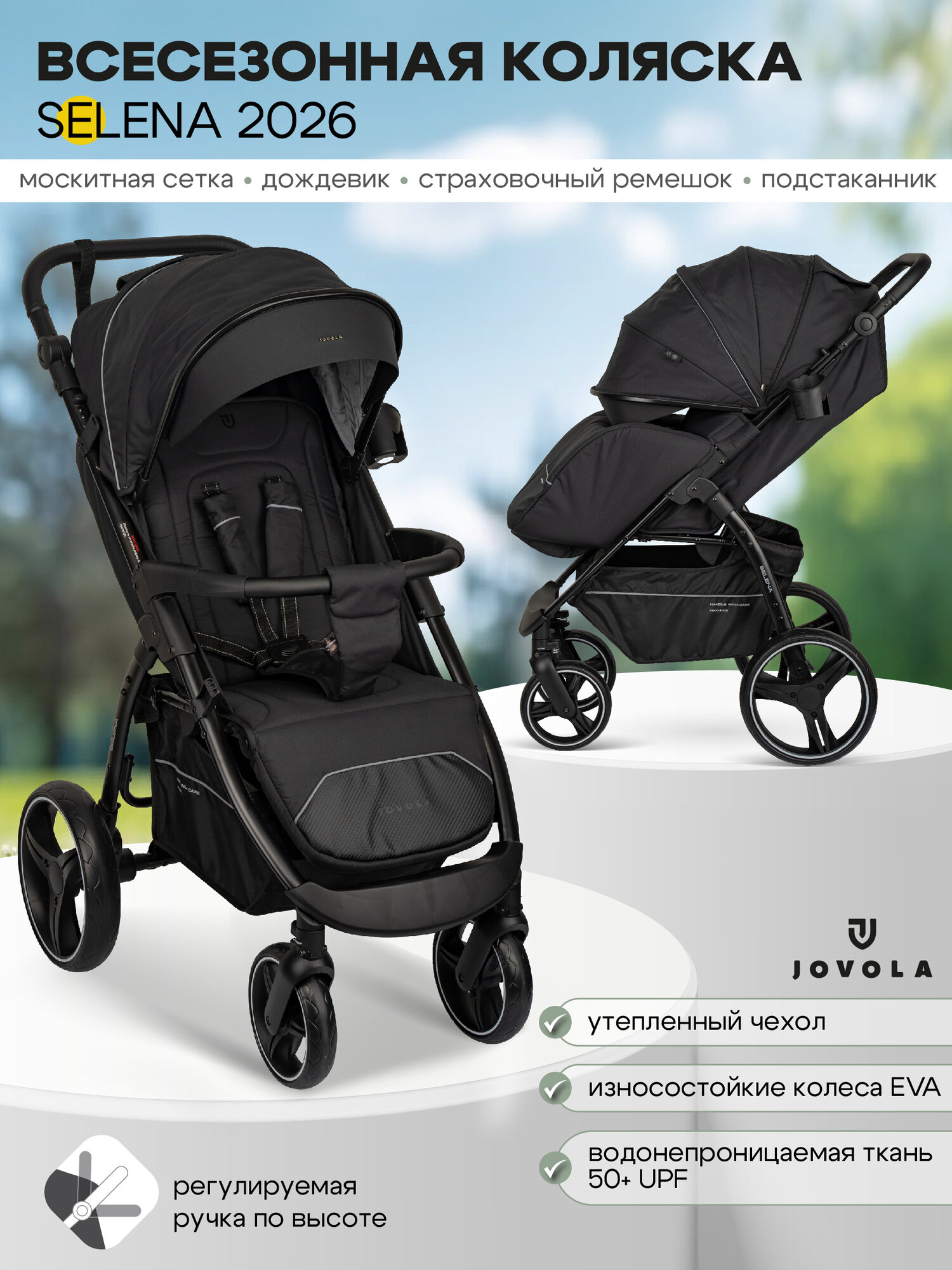 Коляска прогулочная детская Jovola SELENA 2025 с большими колесами, всесезонная, складная, черный: сравнение цен, характеристики, фото, актуальное наличие и цены.