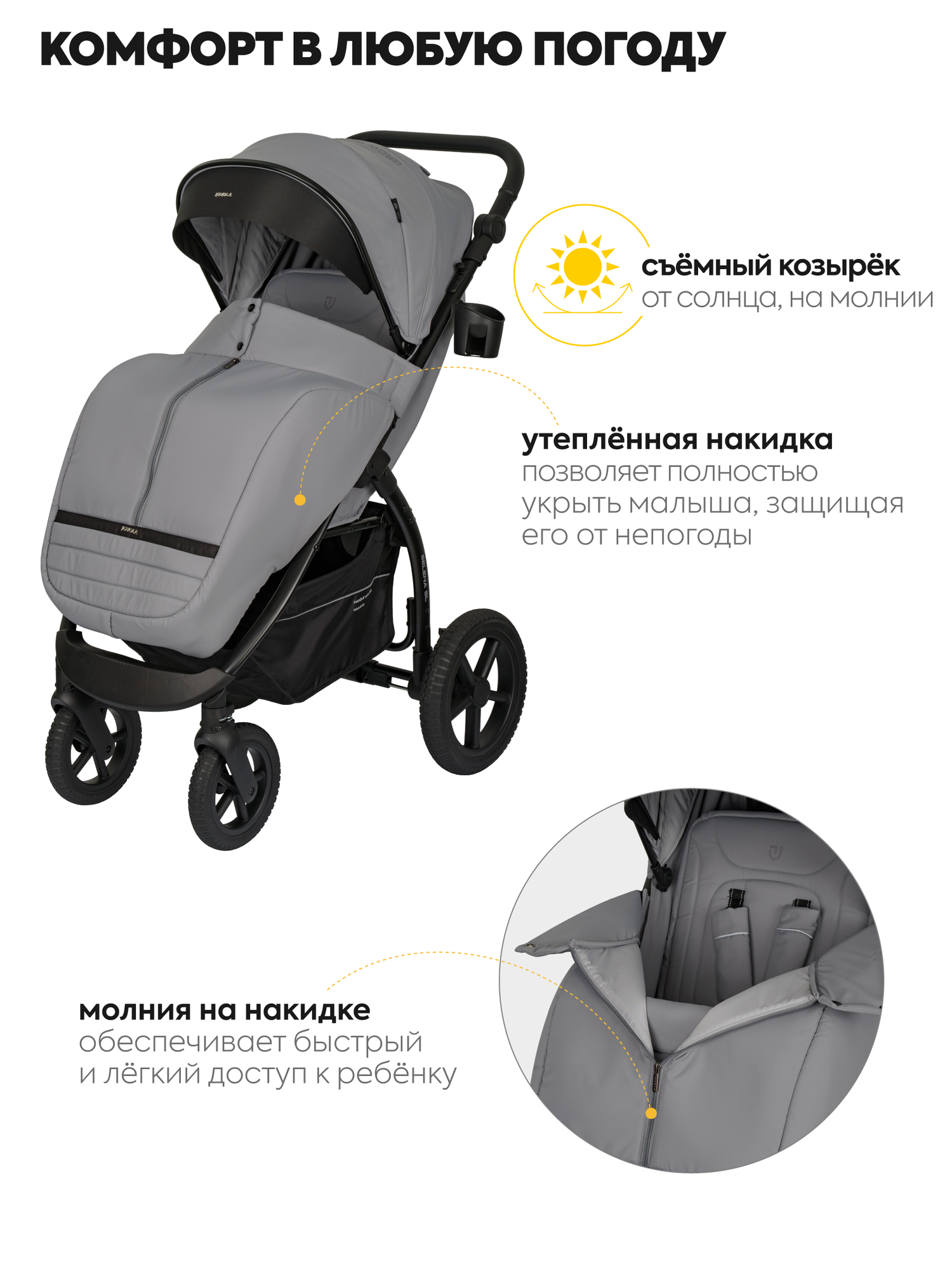 Коляска прогулочная детская Jovola Selena SL, всесезонная, большие резиновые колеса, амортизация, светло-серый: сравнение цен, характеристики, фото, актуальное наличие и цены.