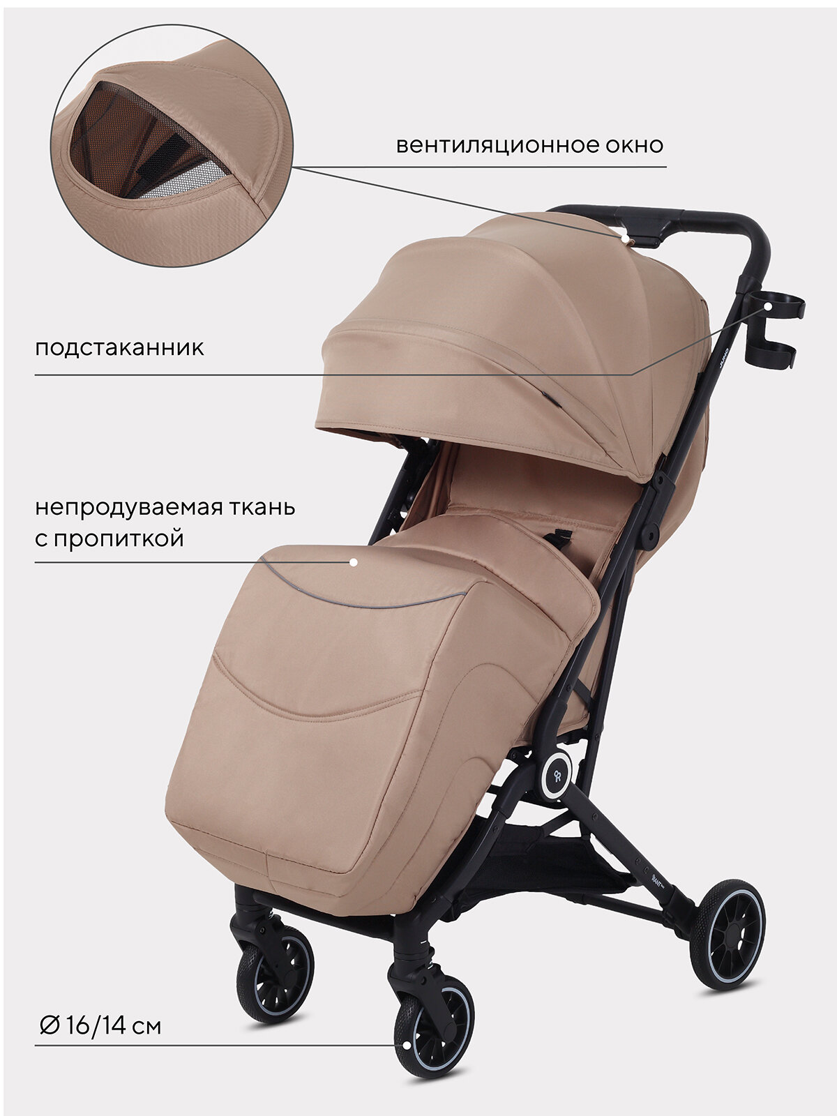 смотровое/вентиляционное окно в капюшоне позволит наблюдать за малышом во время прогулки