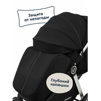 | Дополнительная информация | спинка регулируется механически одной рукой; ножной тормоз, регулируемая подножка, регулируемая ручка, сетка на спинке для проветривания; задний карман на молнии; непромокаемая ткань и молнии; капюшон опускается до бампера, смотровое окошко на капюшоне, кармашек для мелочей; теплый чехол на ножки; корзина для покупок |