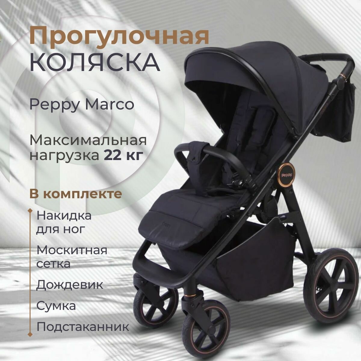 Купить Коляска прогулочная до 22 кг Peppy Marco black, накидка на молнии с доставкой по всей России. Коляска прогулочная до 22 кг Peppy Marco black, накидка на молнии: сравнение цен, характеристики, фото, актуальное наличие и цены.