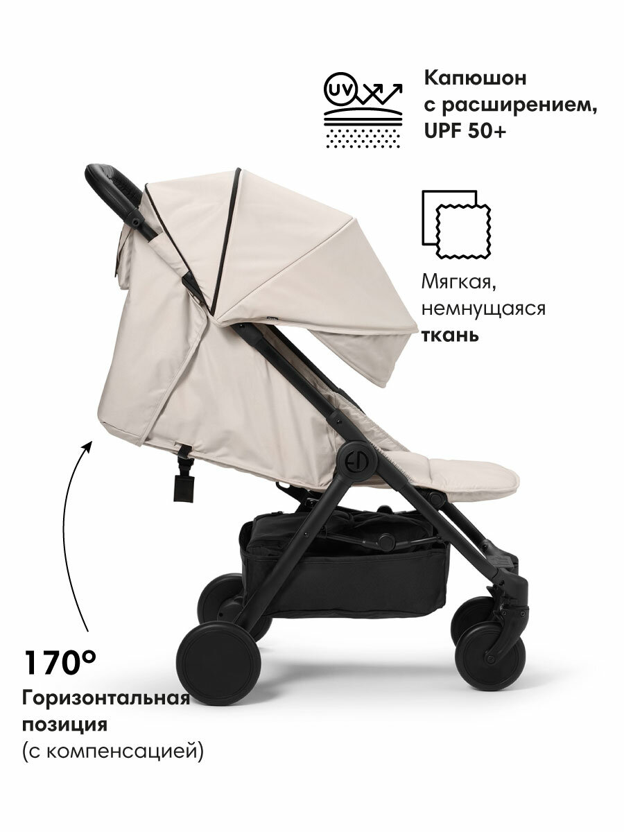 Спинку и подставку для ног в коляске Elodie MONDO можно превратить в идеально ровное место для сна ребенка. А материал козырька "папарацци" обеспечивает защиту от солнечных лучей UPF 50+ во время сна.