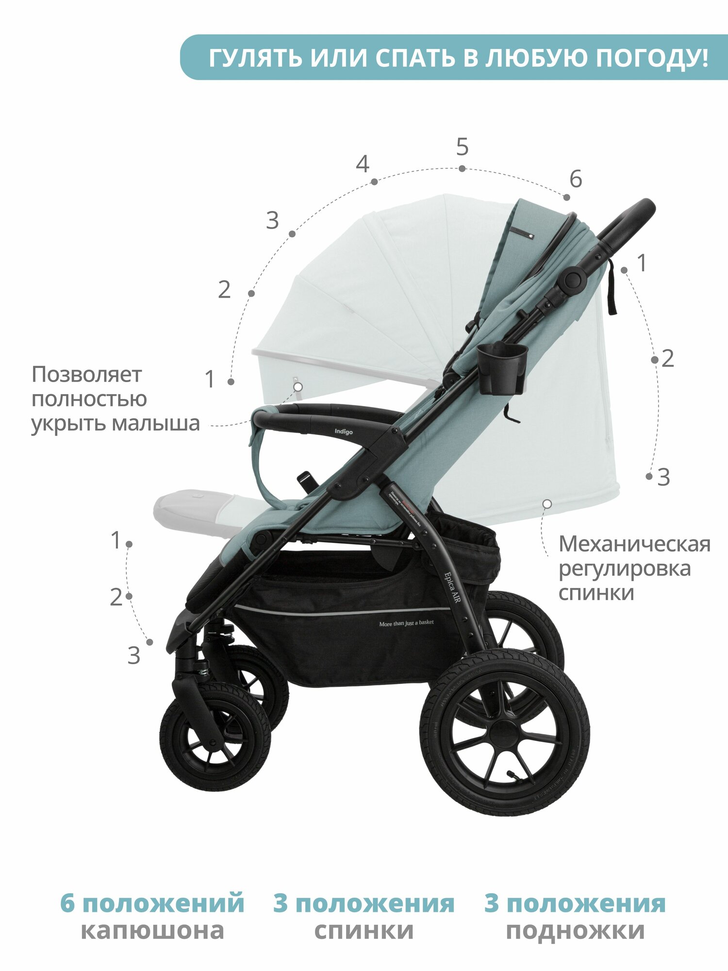 Коляска прогулочная Indigo EPICA XL AIR с сумкой 2025 зелёный: сравнение цен, характеристики, фото, актуальное наличие и цены.