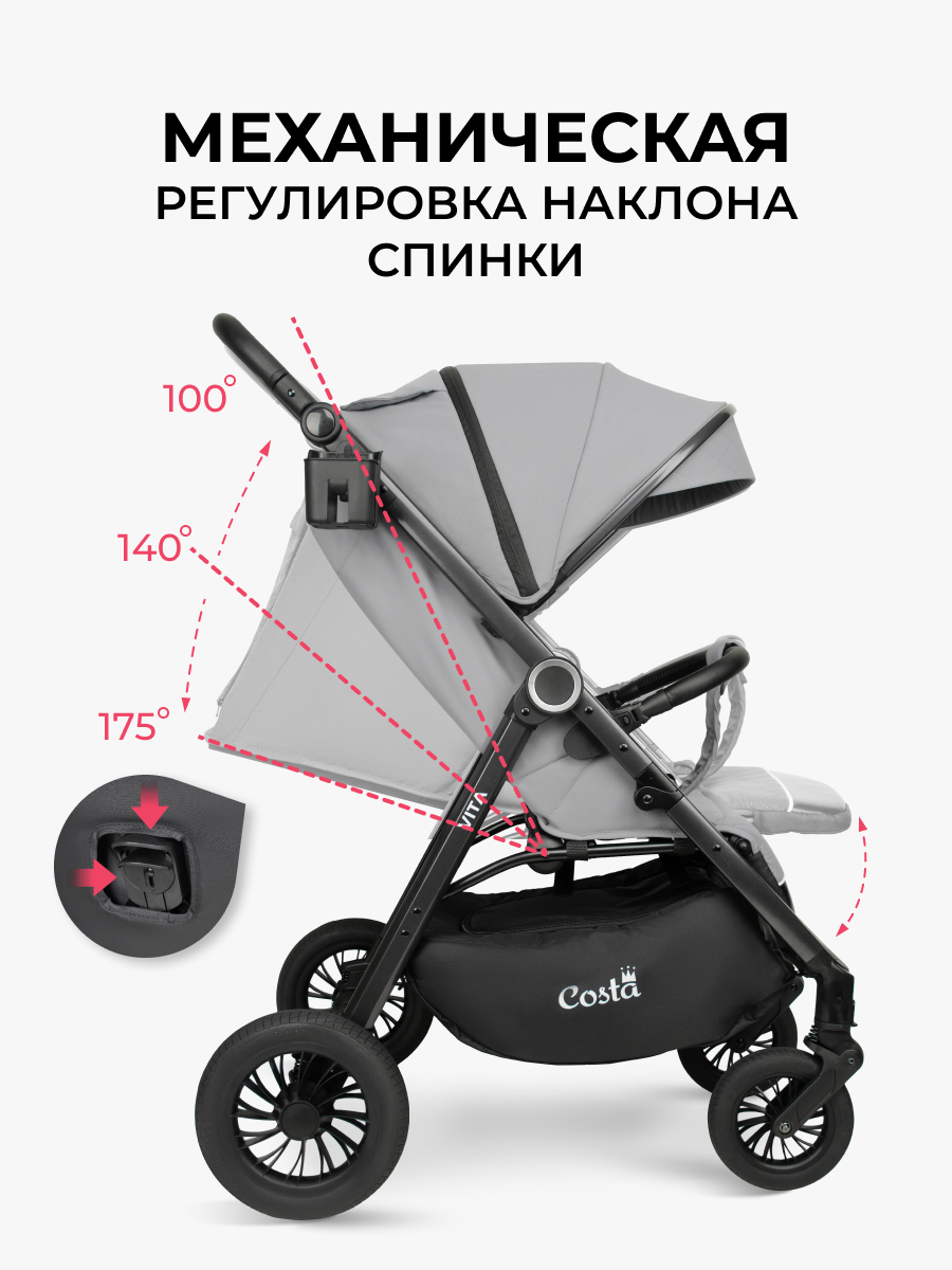 Коляска прогулочная складная всесезонная Costa Vita, до 3 лет, светло-серый: сравнение цен, характеристики, фото, актуальное наличие и цены.