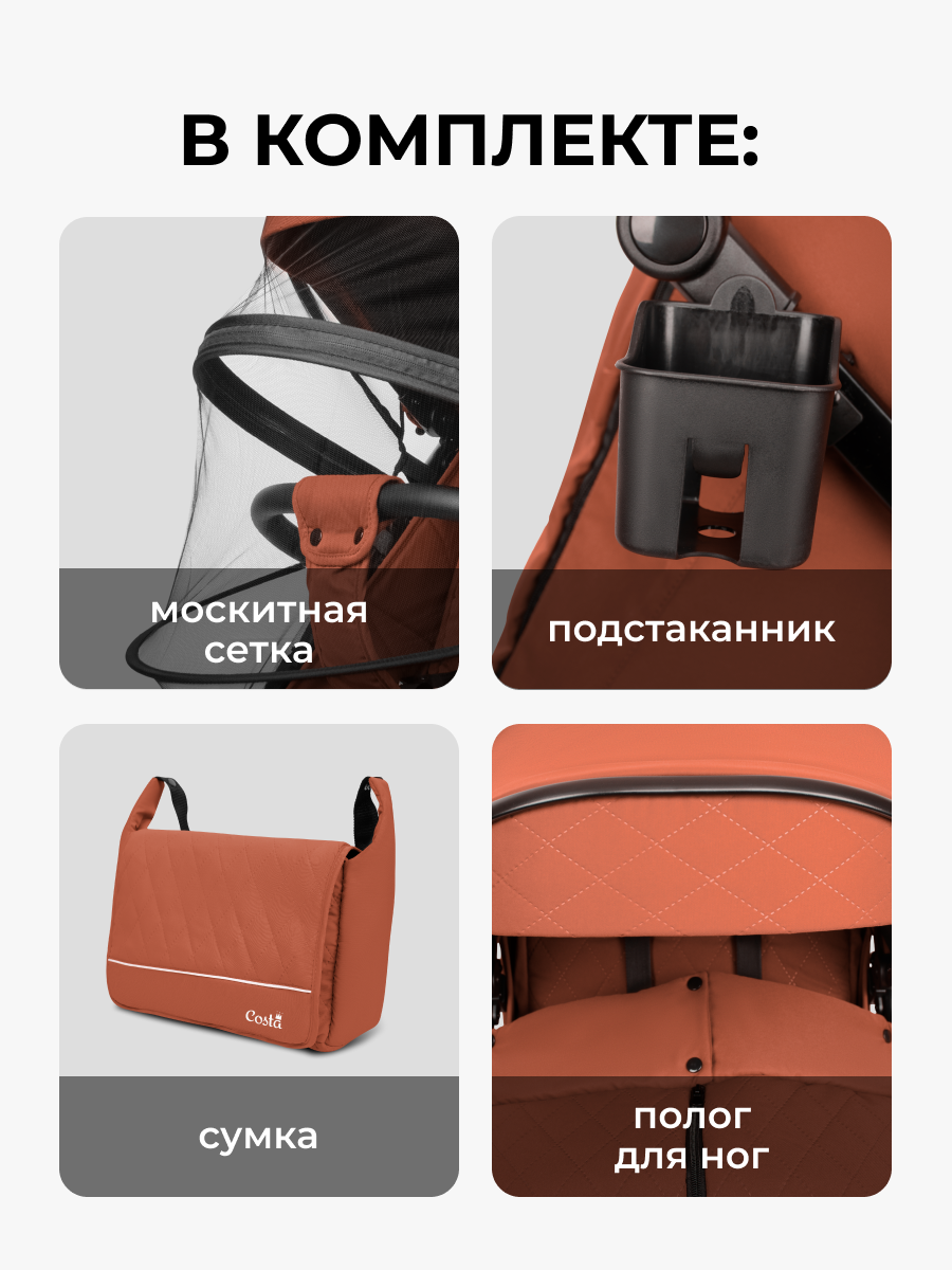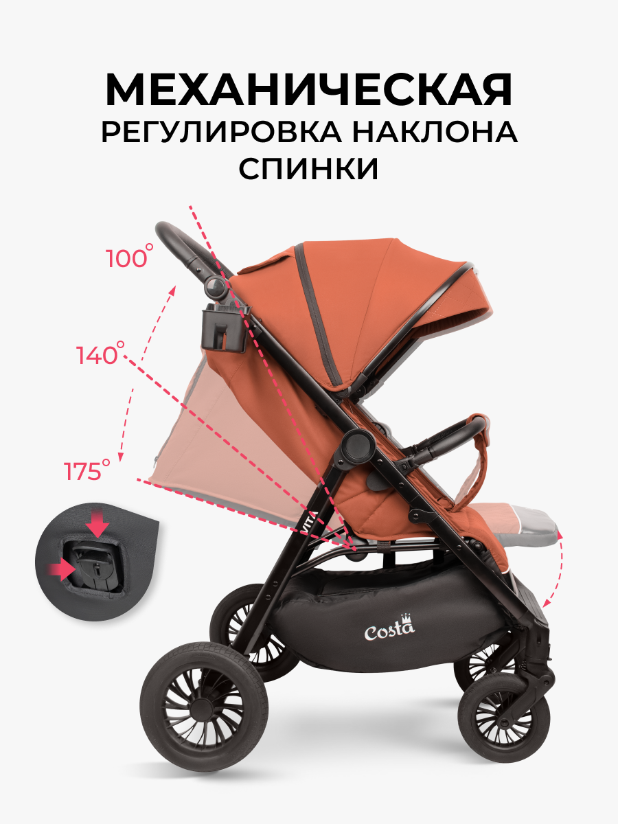 Коляска прогулочная складная всесезонная Costa Vita, до 3 лет, терракотовый: сравнение цен, характеристики, фото, актуальное наличие и цены.