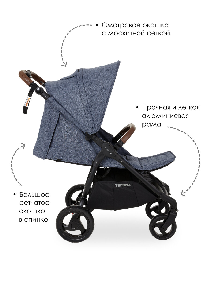 Алюминиевая рама с колёсами и корзинкой для покупок. Сиденье с капюшоном и бампером.