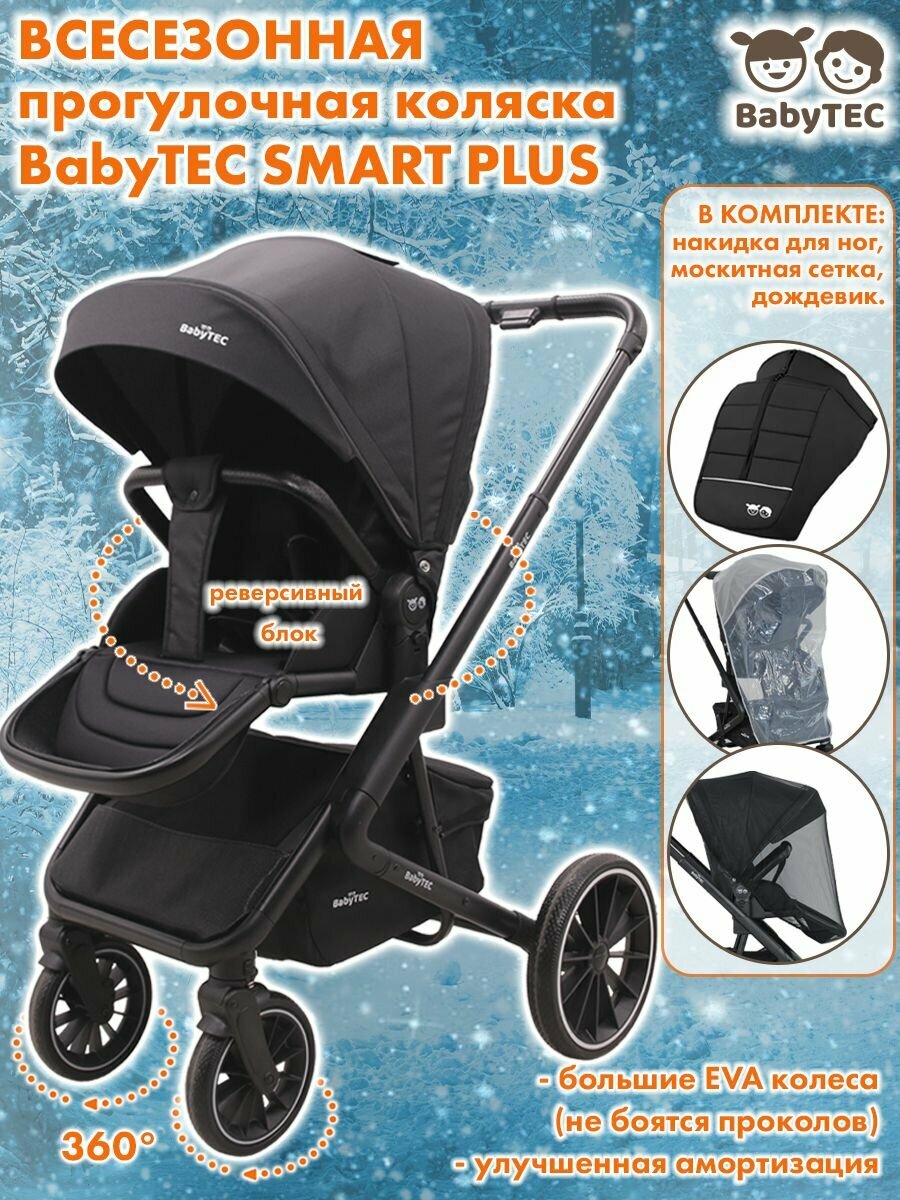 Купить Коляска прогулочная всесезонная BabyTEC SMART PLUS чёрная с дождевиком и москитной сеткой с доставкой по всей России.