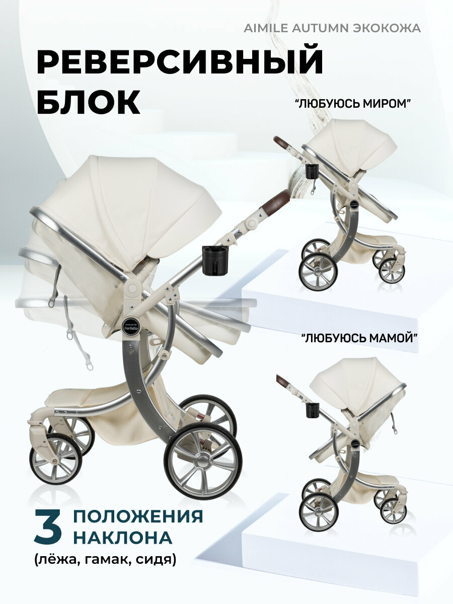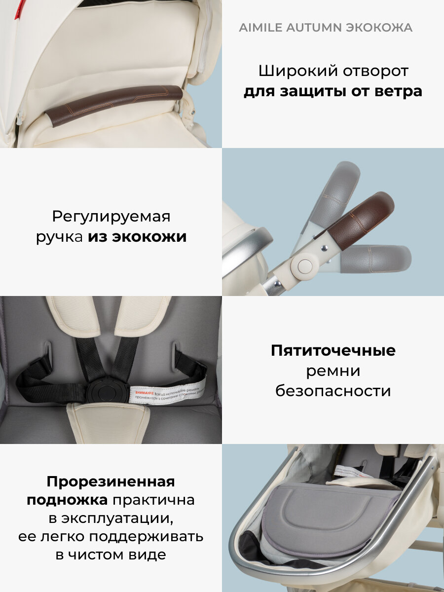 Коляска-трансформер для новорожденных Aimile Original Autumn, экокожа, молочный: сравнение цен, характеристики, фото, актуальное наличие и цены.
