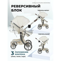 Коляска-трансформер для новорожденных Aimile Original Autumn, экокожа, молочный