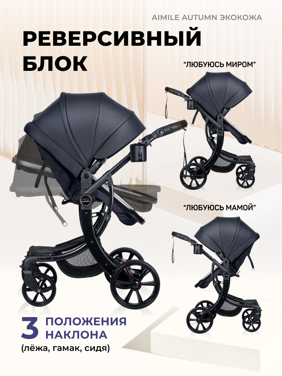 Купить Коляска-трансформер для новорожденных Aimile Original Autumn, экокожа, Парижская ночь с доставкой по всей России.
