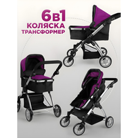 Коляска Трансформер 6 в1, фиолетово-черная, металлическая для кукол до 45см, с корзиной: сравнение цен, характеристики, фото, актуальное наличие и цены.