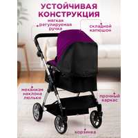Купить Коляска Трансформер 6 в1, фиолетово-черная, металлическая для кукол до 45см, с корзиной с доставкой по всей России.