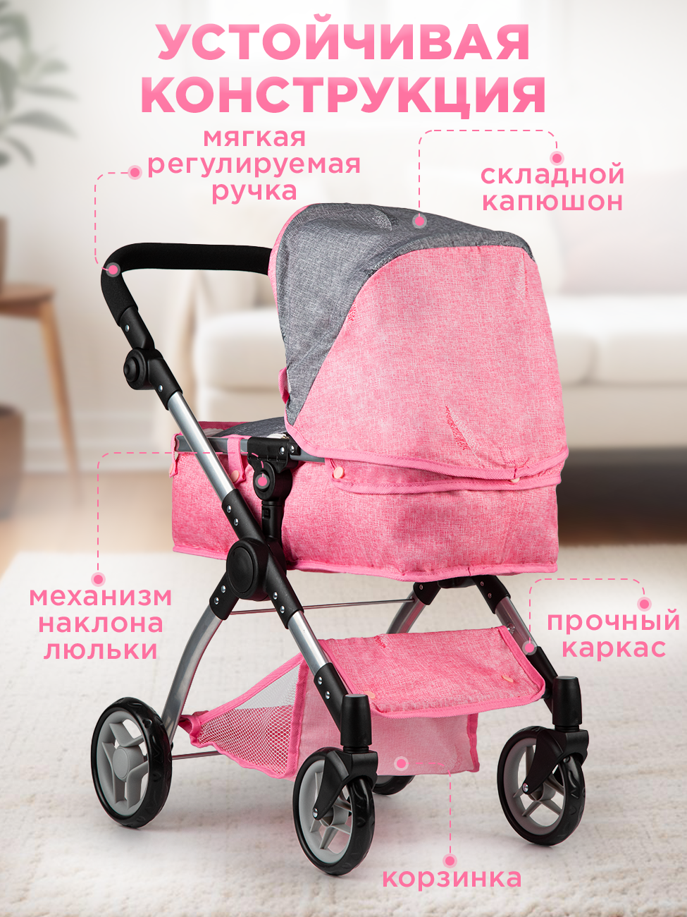 ü коляска детская для кукол трансформер легко складывается — займёт минимум места дома.