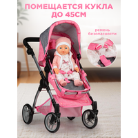 Детская коляска для куклы подходит для кукол до 45 см. Сиденье с ремнём безопасности удержит игрушку на месте, а капюшон защитит от «солнышка» (да-да, даже если это настольная лампа в детской).