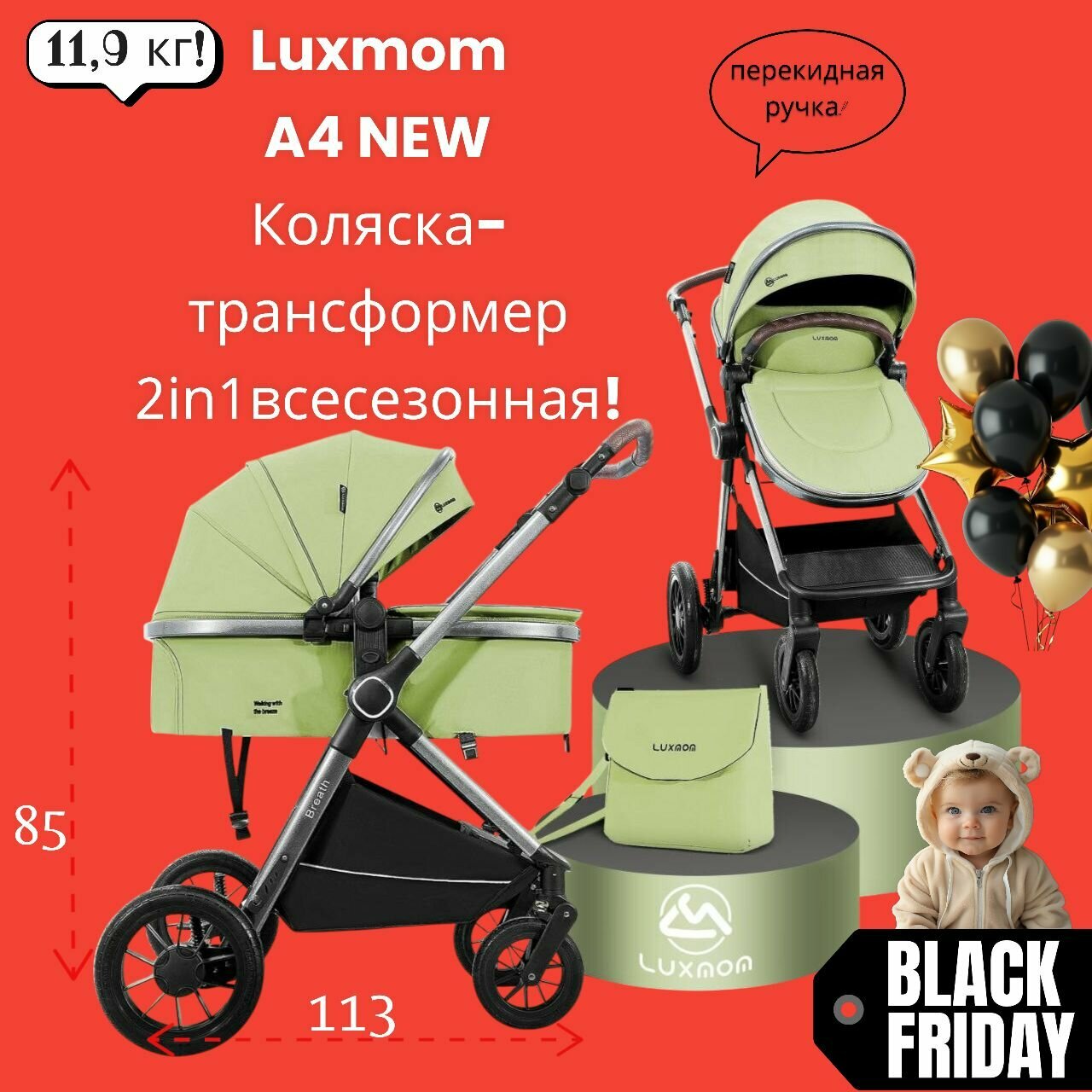 Коляска-трансформер 2в1 с перекидной ручкой Luxmom A4 , зеленый: сравнение цен, характеристики, фото, актуальное наличие и цены.