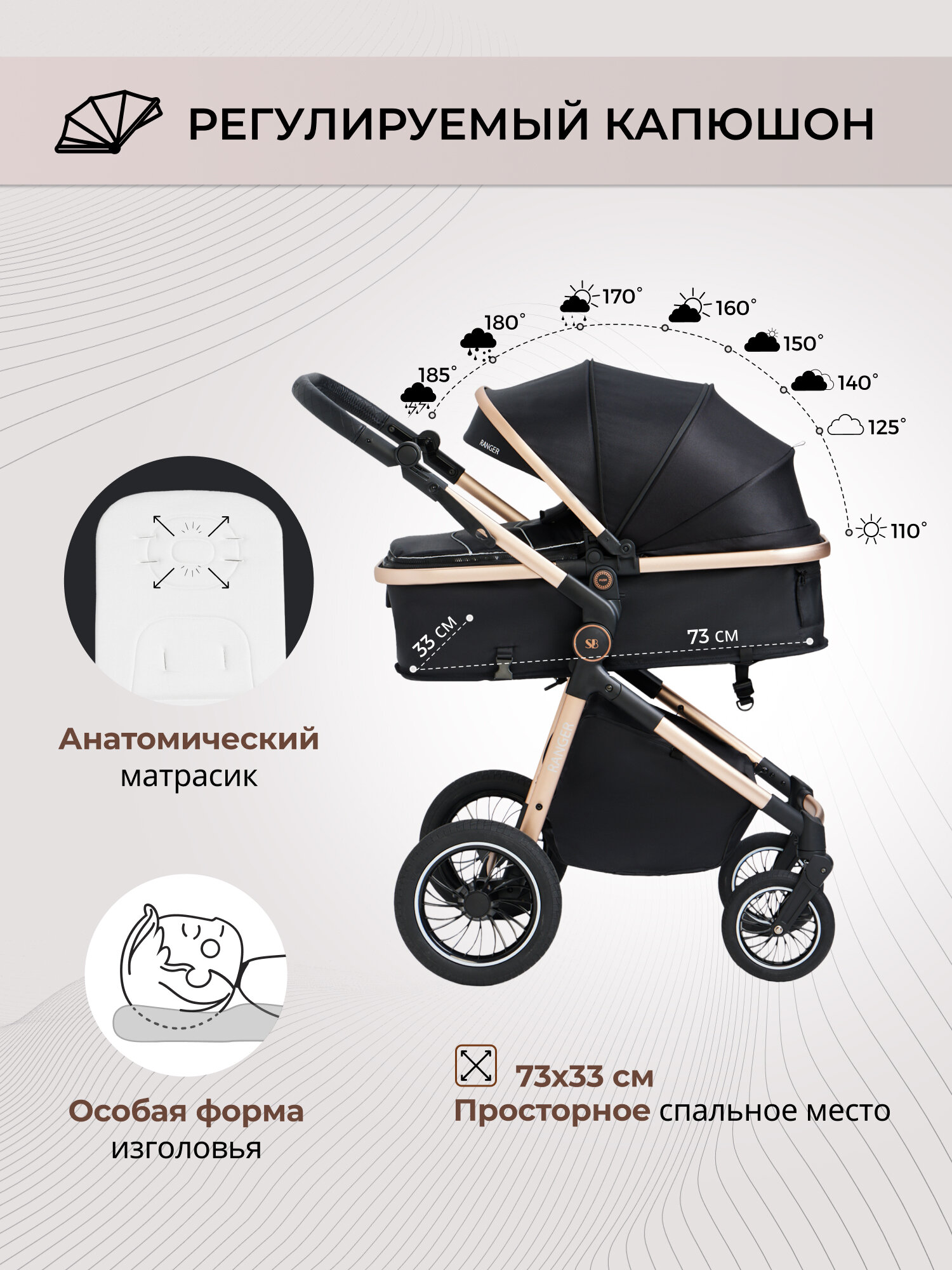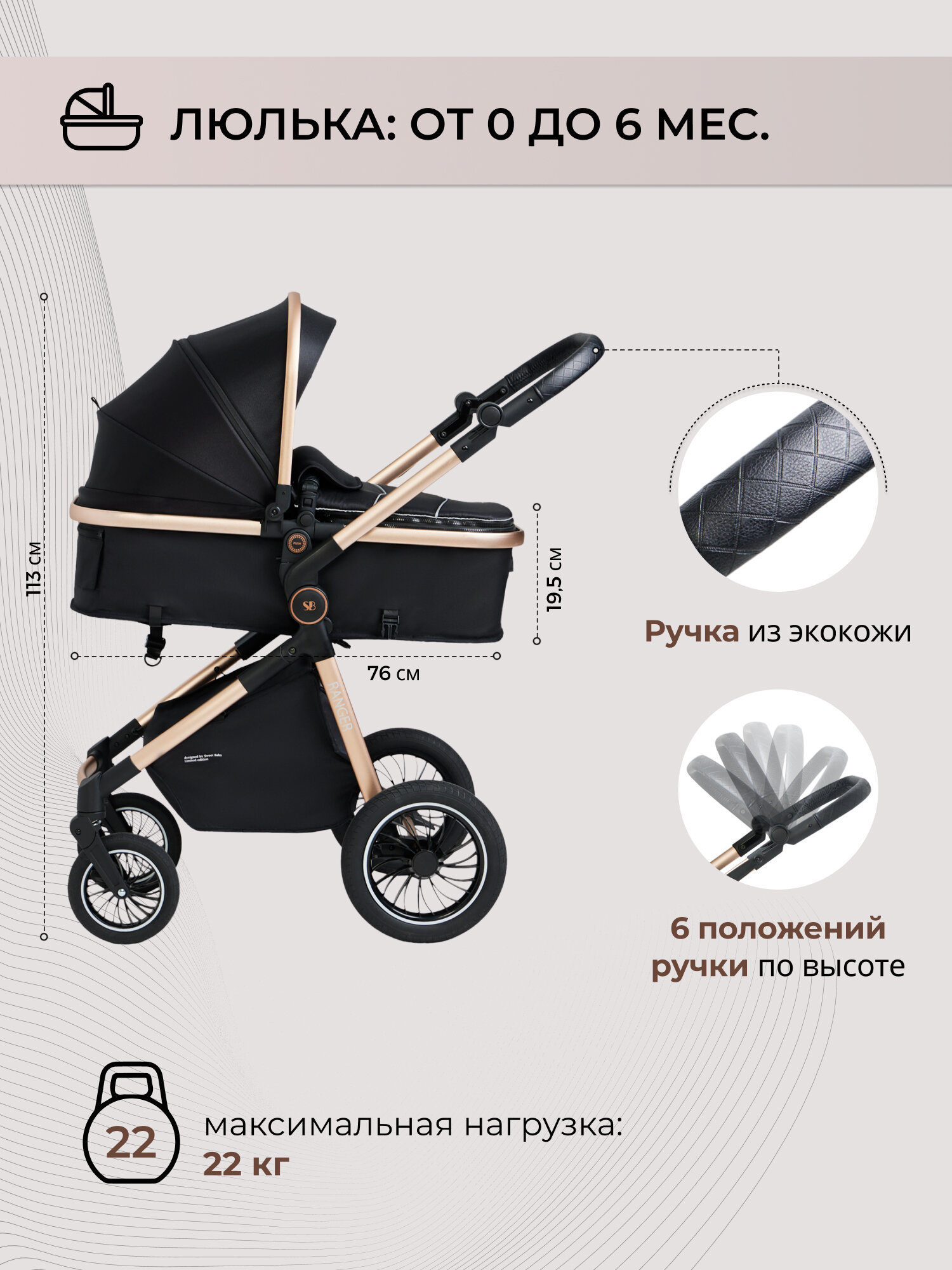 Коляска 3 в 1 для новорожденных трансформер Sweet Baby Ranger Neo Black Gold: сравнение цен, характеристики, фото, актуальное наличие и цены.