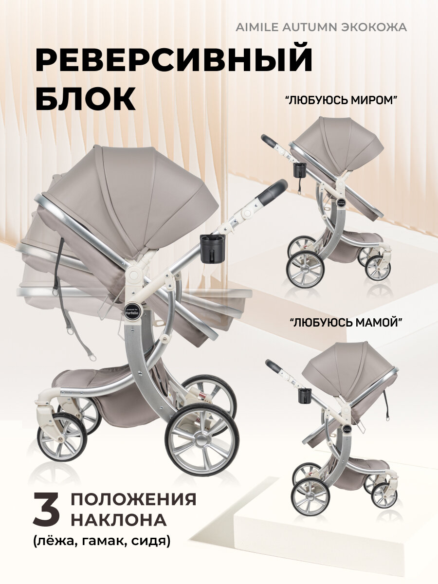 Коляска-трансформер для новорожденных Aimile Original Autumn выполнена с использованием материалов Premium качества: экокожа и европейская ткань плотного плетения 600D с водоотталкивающей пропиткой.