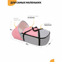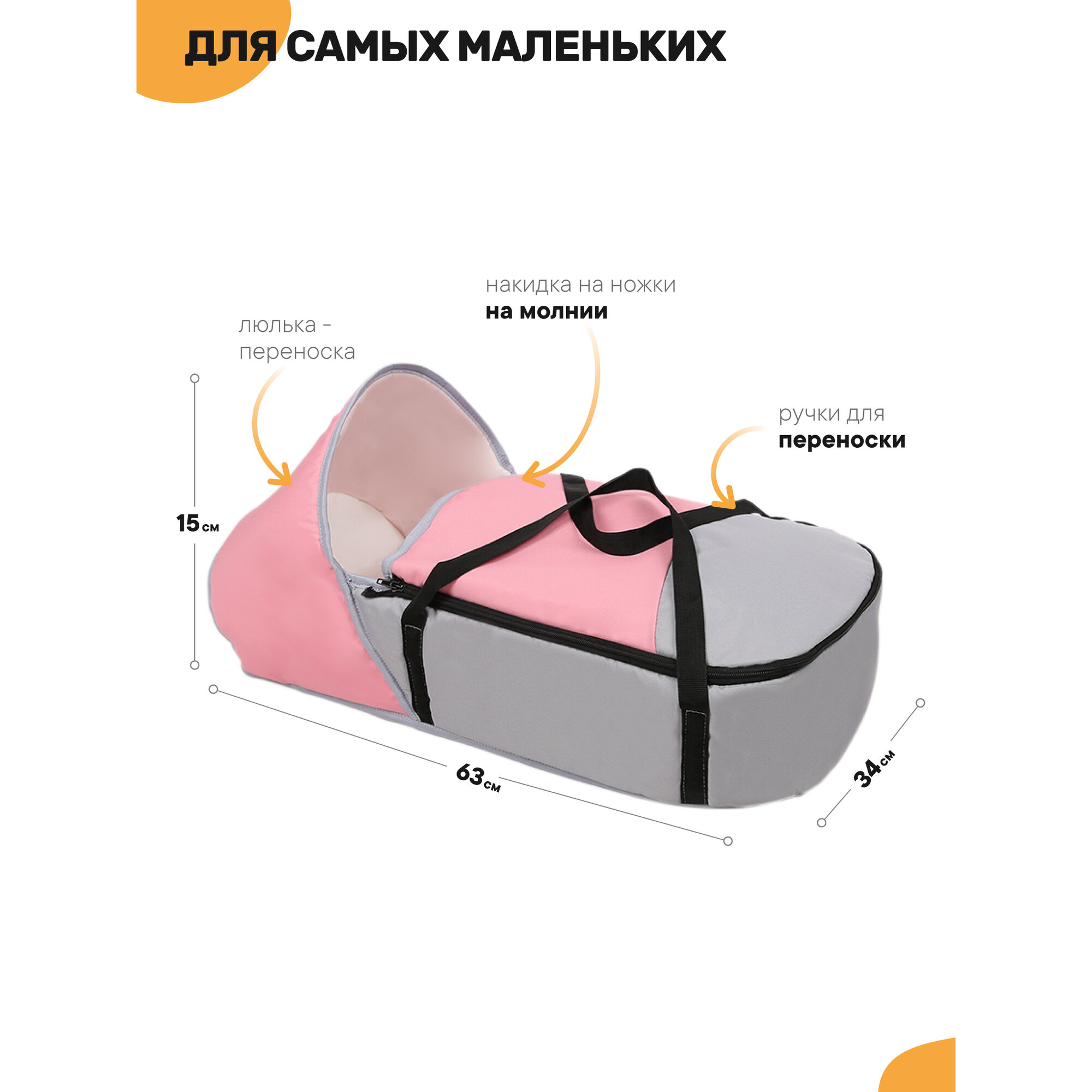 В комплекте есть все необходимое для ежедневных прогулок в любых погодных условиях. Люлька переноска удобна и практична( 66х34х17см) имеет надежное основание и застежку-молнию. Легко поместится в автомобиль.
