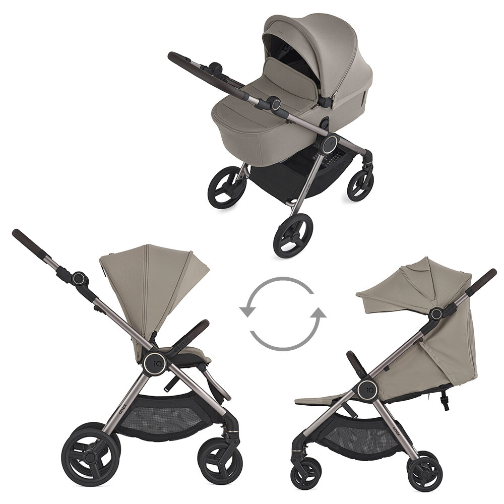 Anex iQ — коляска-конструктор, которая станет верным спутником на всё детство! Новая рама позволяет переключаться с 2 в 1 на прогулочную коляску всего за 3 минуты — без дополнительных инструментов.