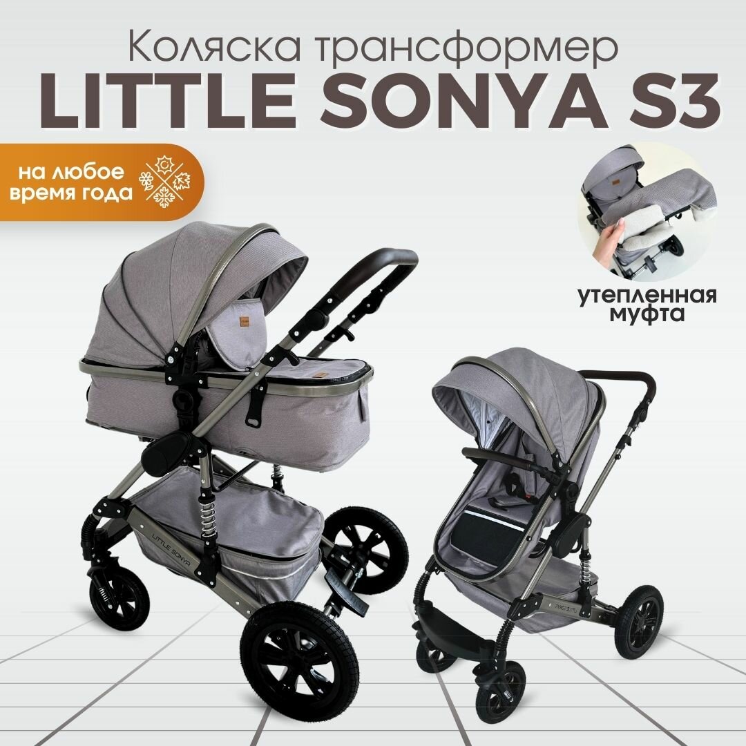 Купить Коляска-трансформер Little Sonya S3 2в1 для новорожденных, серая с доставкой по всей России.
