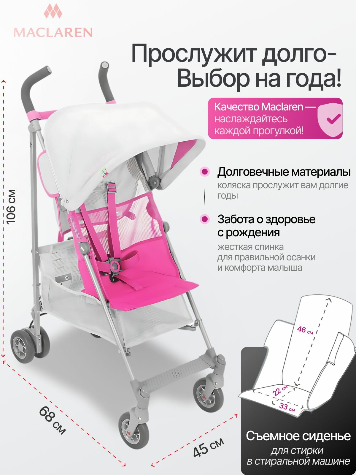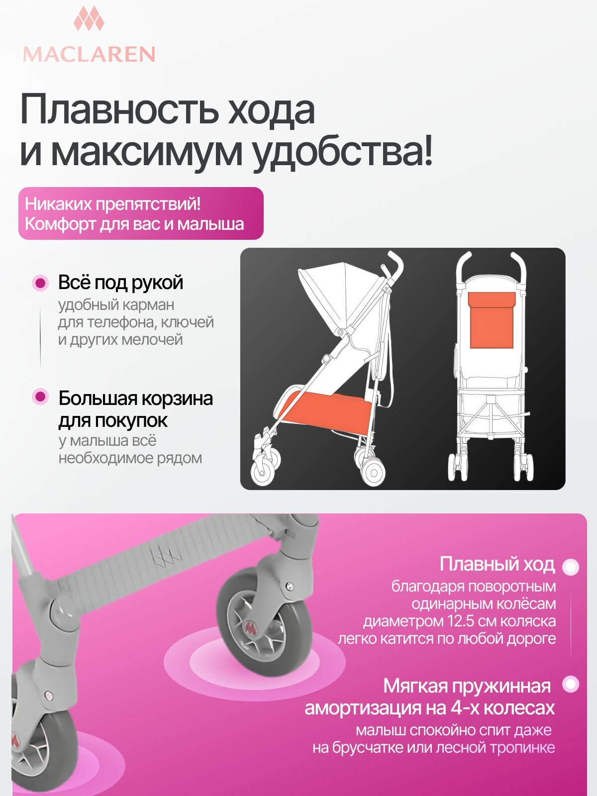 Коляска трость Maclaren Volo Silver/Azalea: сравнение цен, характеристики, фото, актуальное наличие и цены.