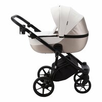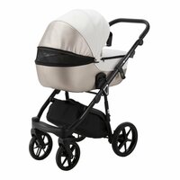 Купить Коляска универсальная Adamex Bibione LUX 3 в 1, BI-TSB12 — бело-золотистая рогожка, бежево-золотистая кожа с доставкой по всей России.