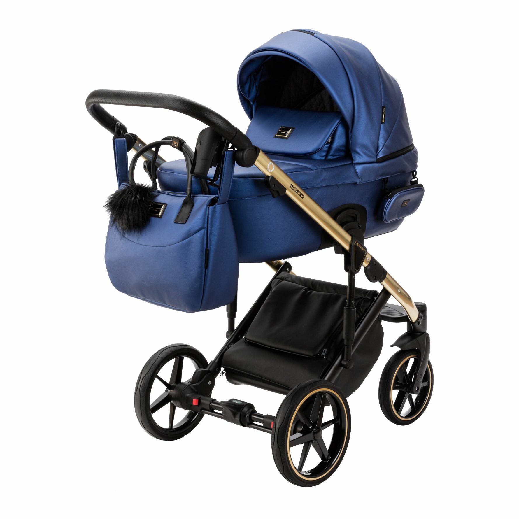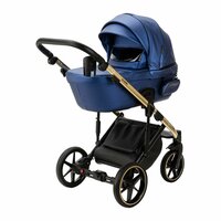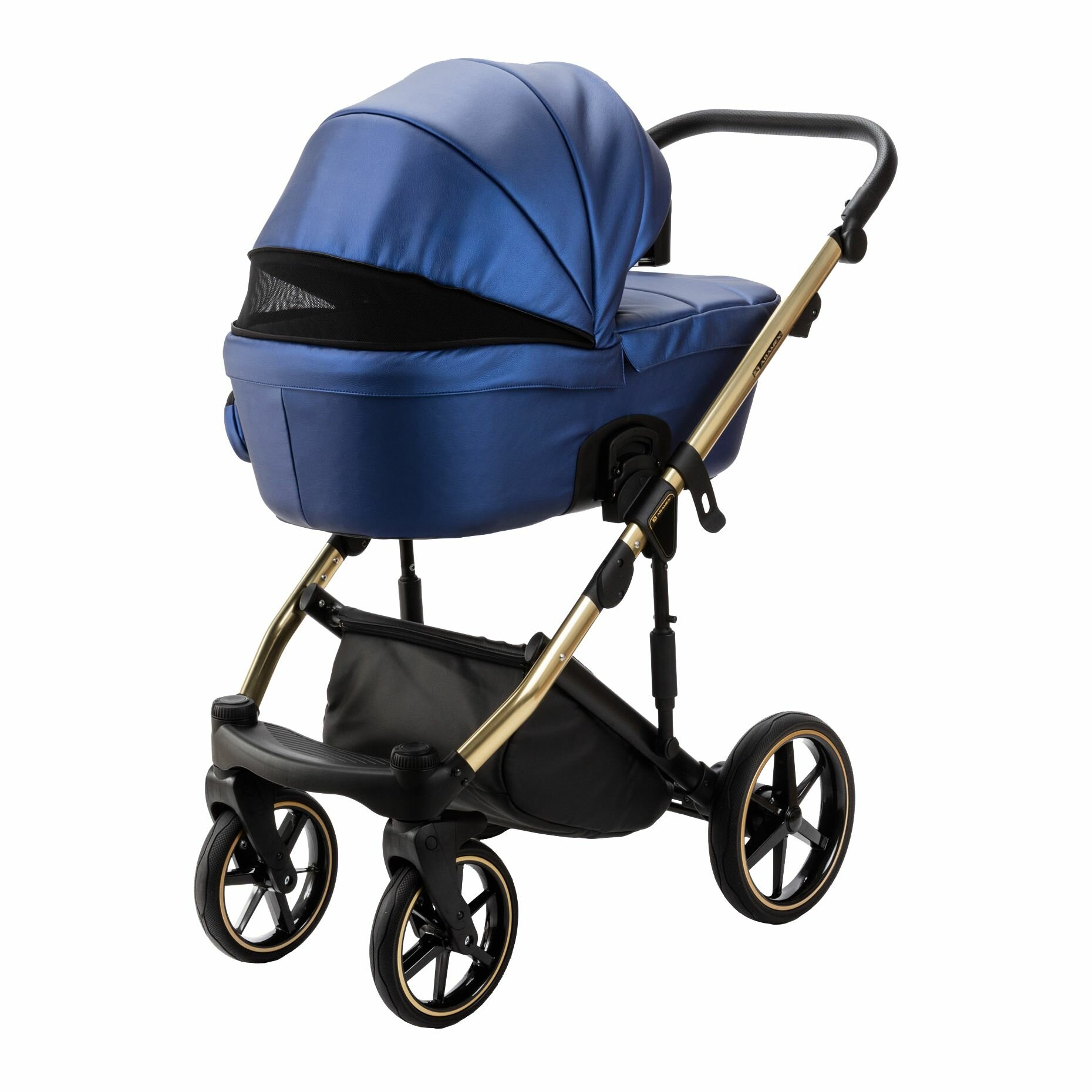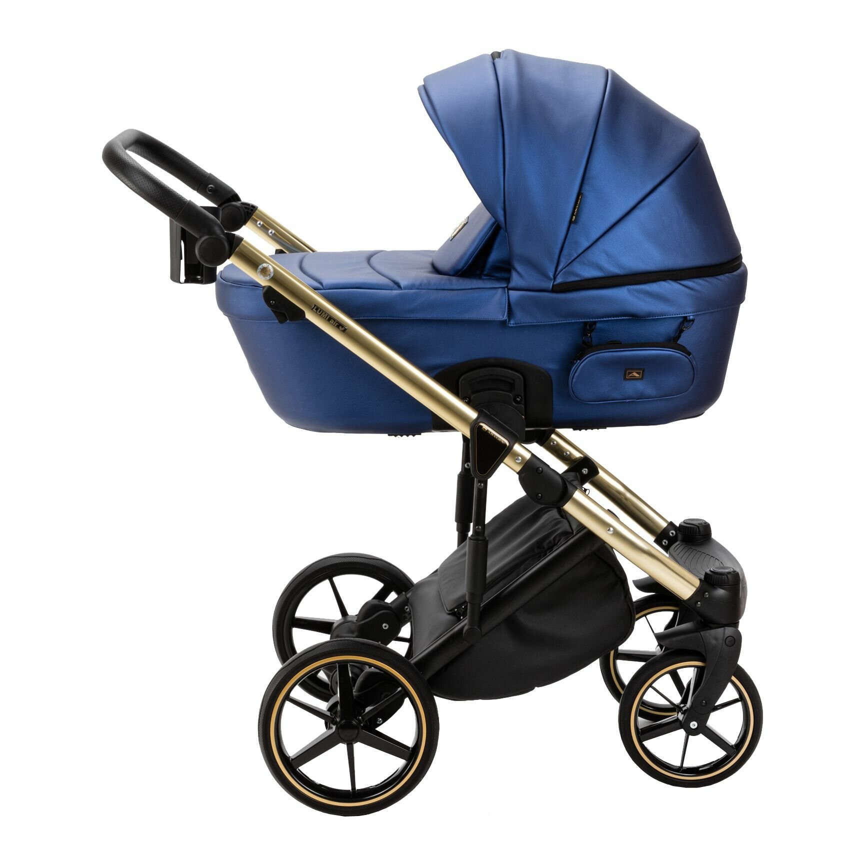 Купить Коляска универсальная Adamex Lumi air SE Deluxe 2 в 1, SM-503 — Синяя экокожа, золотая рама. с доставкой по всей России.