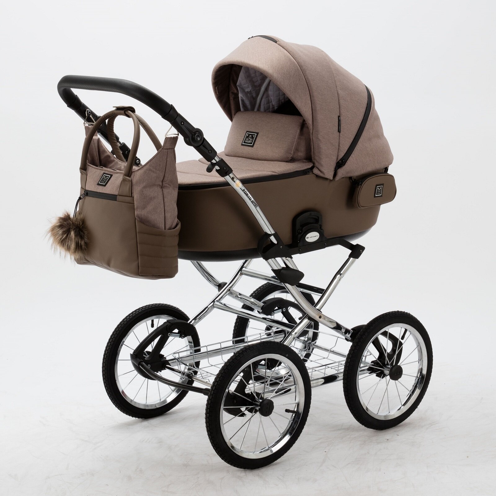 Купить Коляска универсальная Adamex Porto RETRO TIP 2 в 1, PO-PS15 — Бежевая ткань, темно-бежевая эко-кожа с доставкой по всей России.