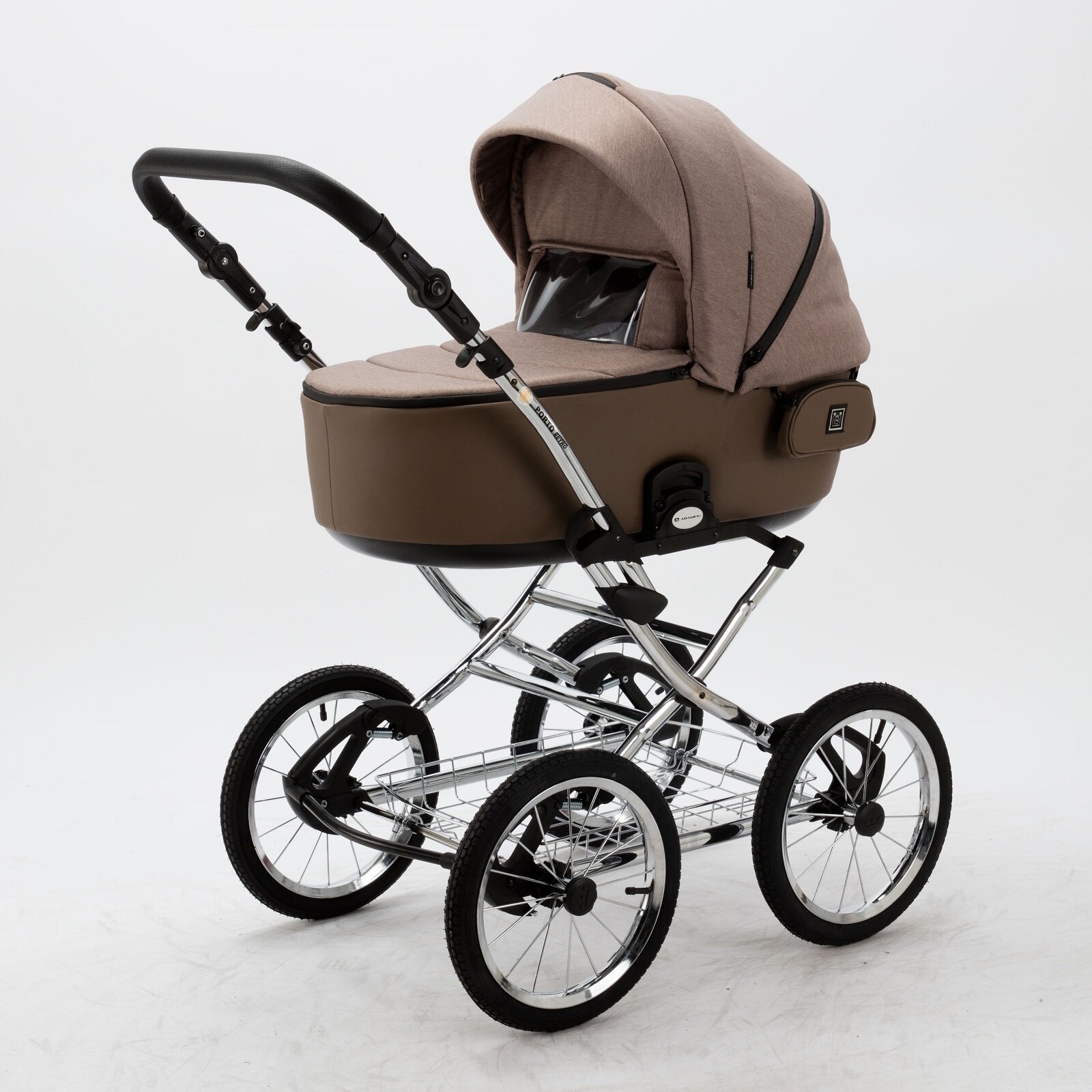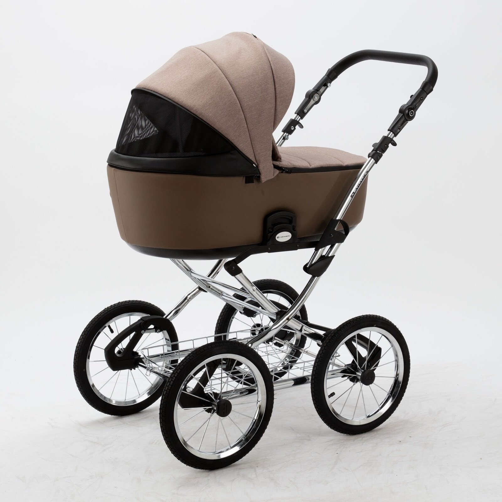Коляска универсальная Adamex Porto RETRO TIP 2 в 1, PO-PS15 — Бежевая ткань, темно-бежевая эко-кожа: сравнение цен, характеристики, фото, актуальное наличие и цены.