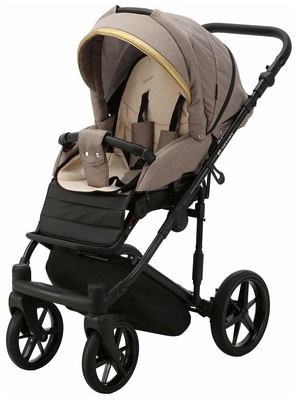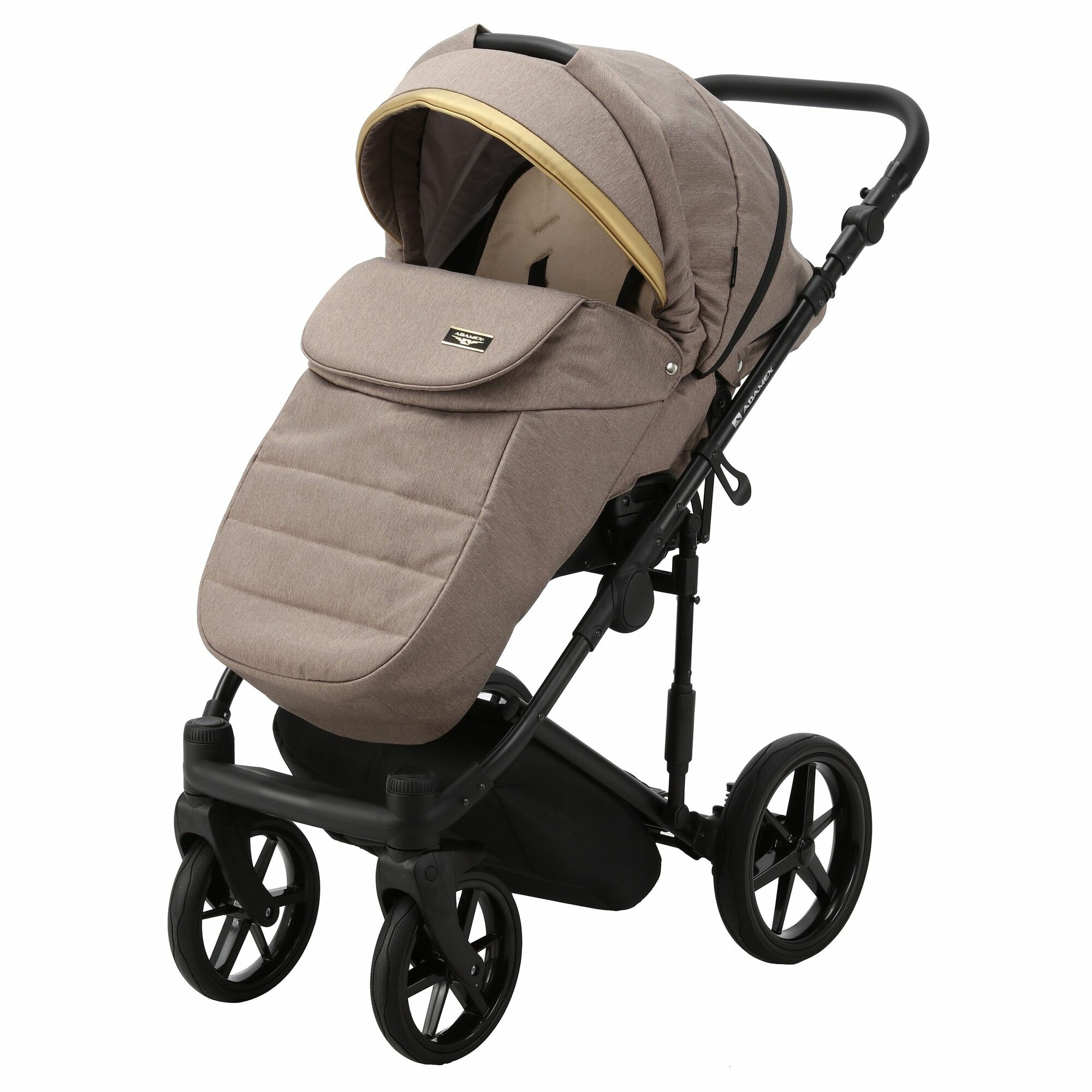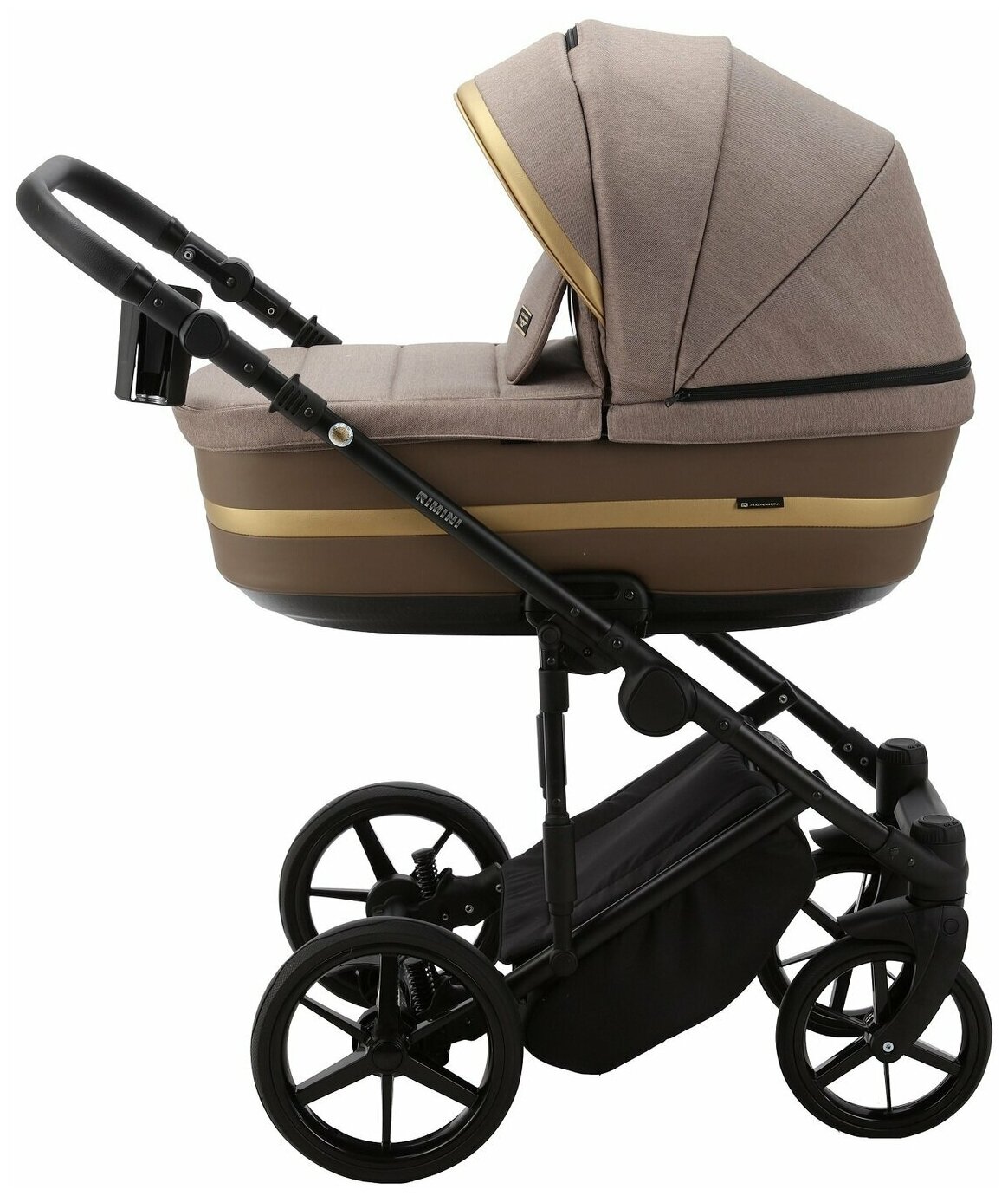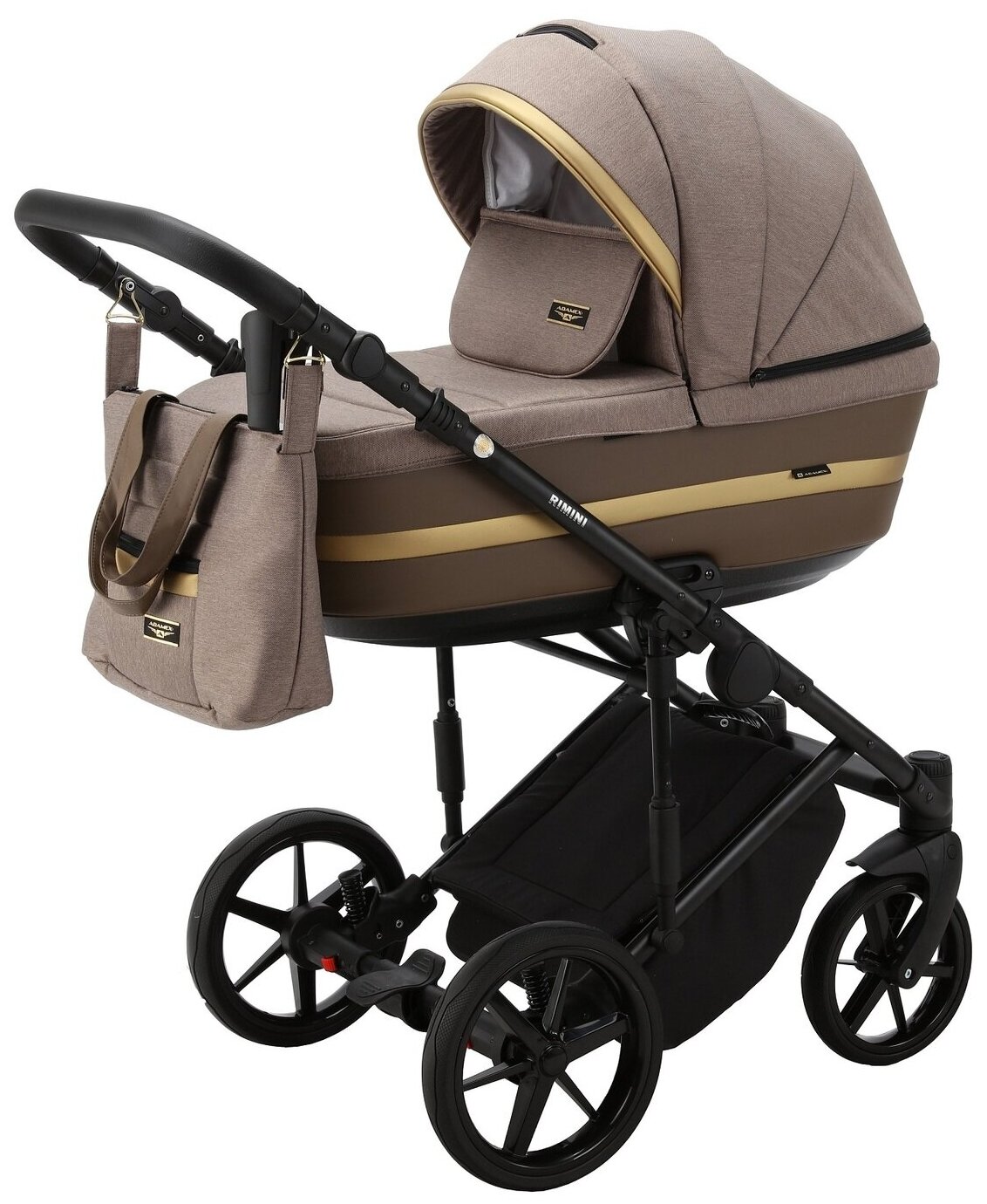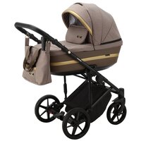 Коляска универсальная Adamex RIMINI 2 в 1, RI-15 — бежевая, золотая вставка, черная рама: сравнение цен, характеристики, фото, актуальное наличие и цены.