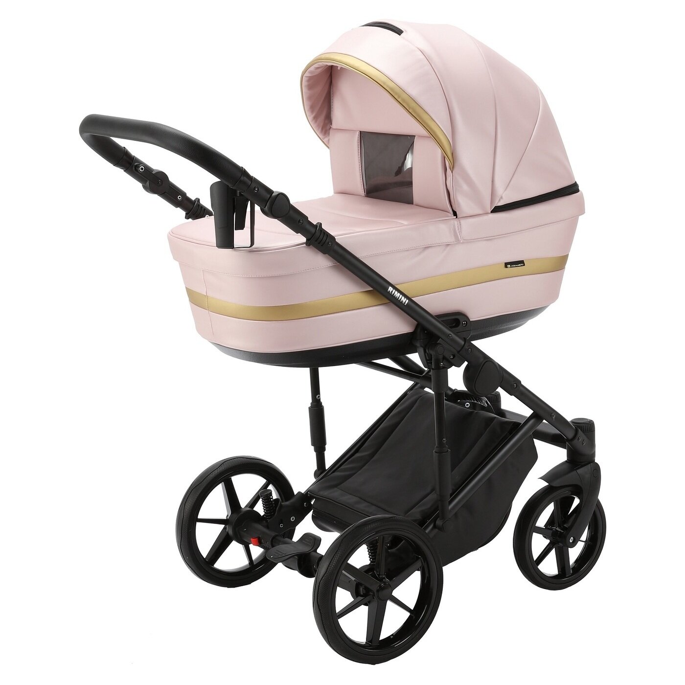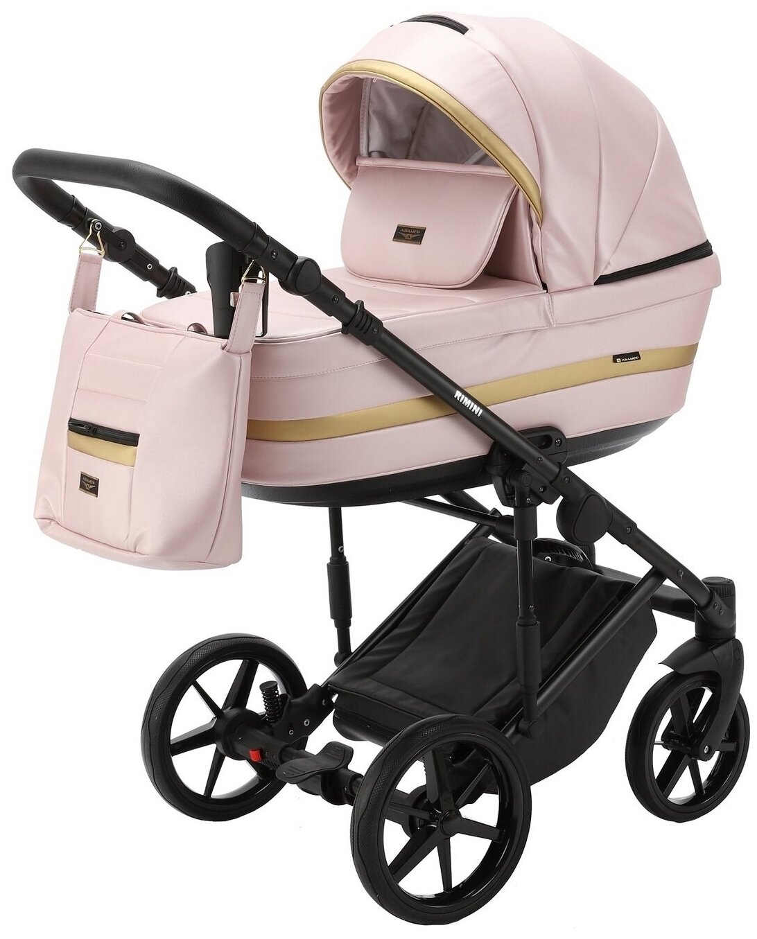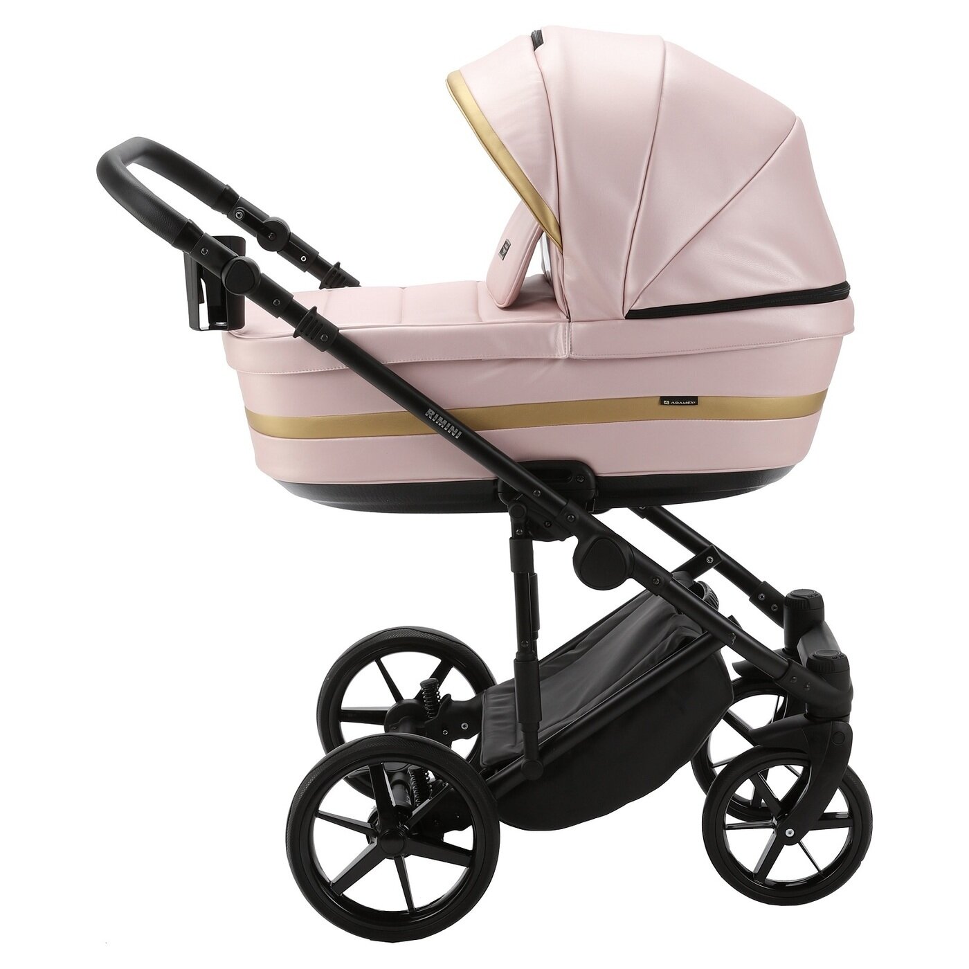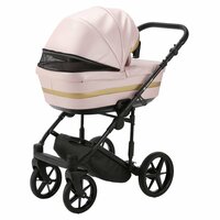Коляска универсальная Adamex RIMINI Deluxe 2 в 1, RI-244 — светло-розовая кожа, золотая вставка, черная рама: сравнение цен, характеристики, фото, актуальное наличие и цены.