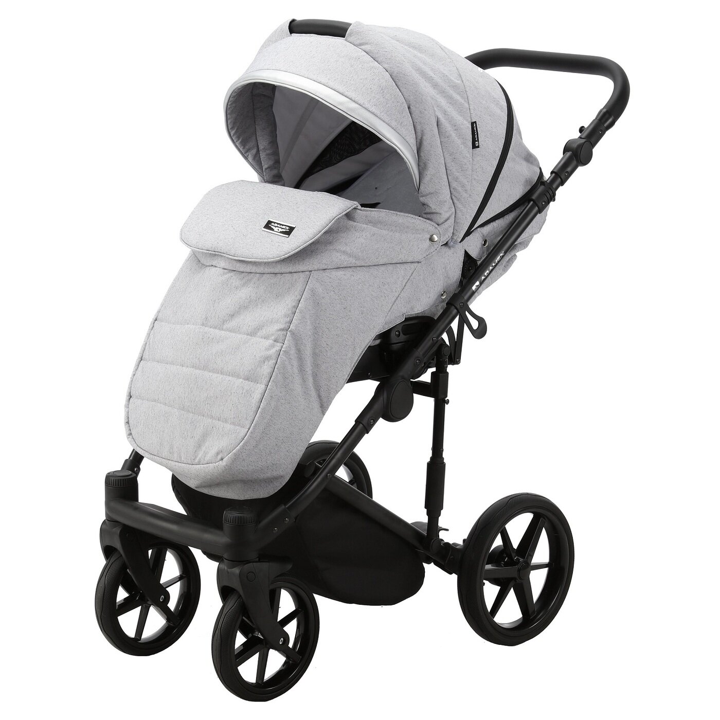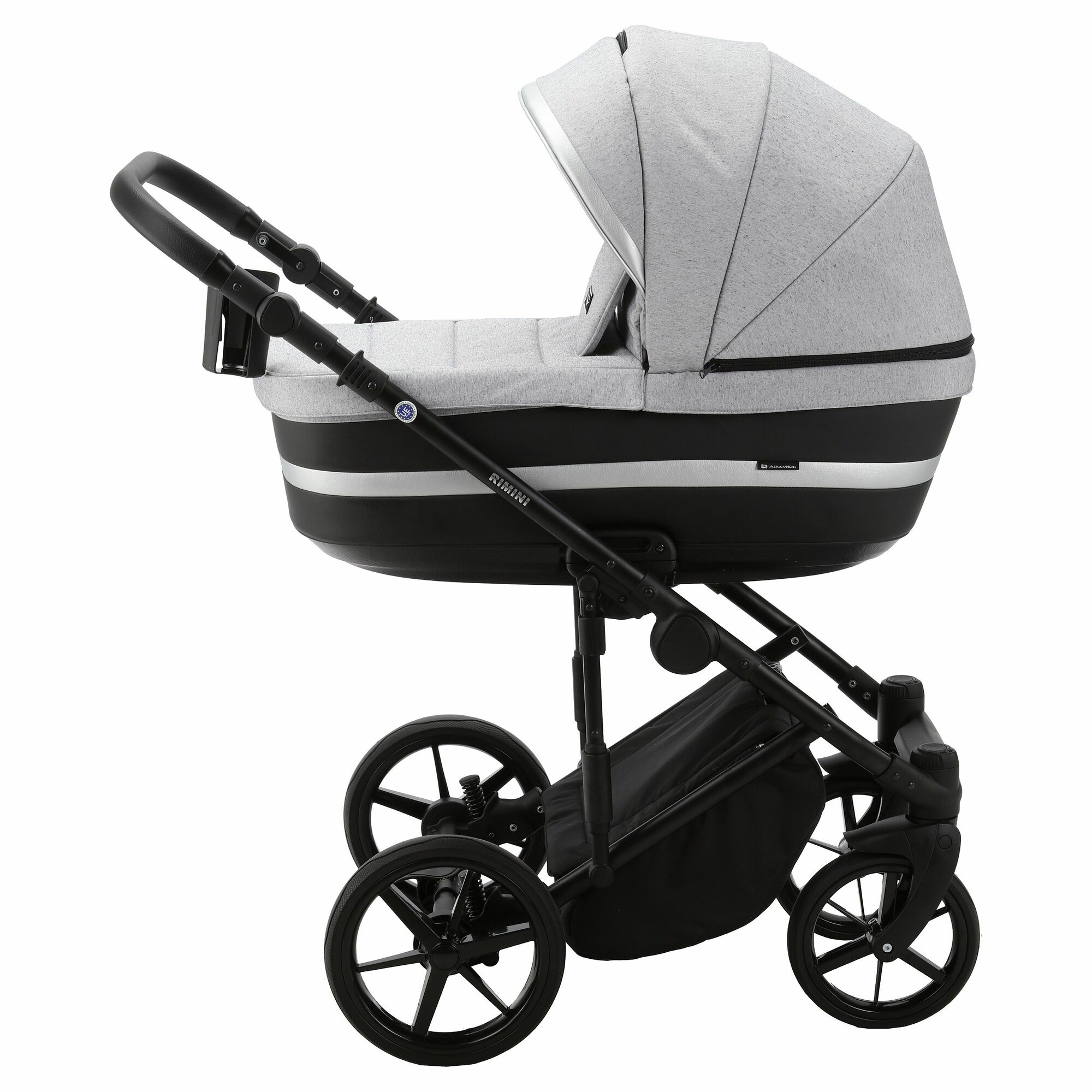Коляска универсальная Adamex RIMINI LUX 2 в 1, RI-13 — светло-серая, черная кожа, серебристая вставка: сравнение цен, характеристики, фото, актуальное наличие и цены.