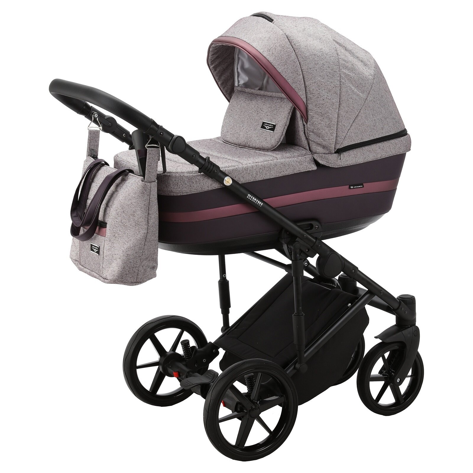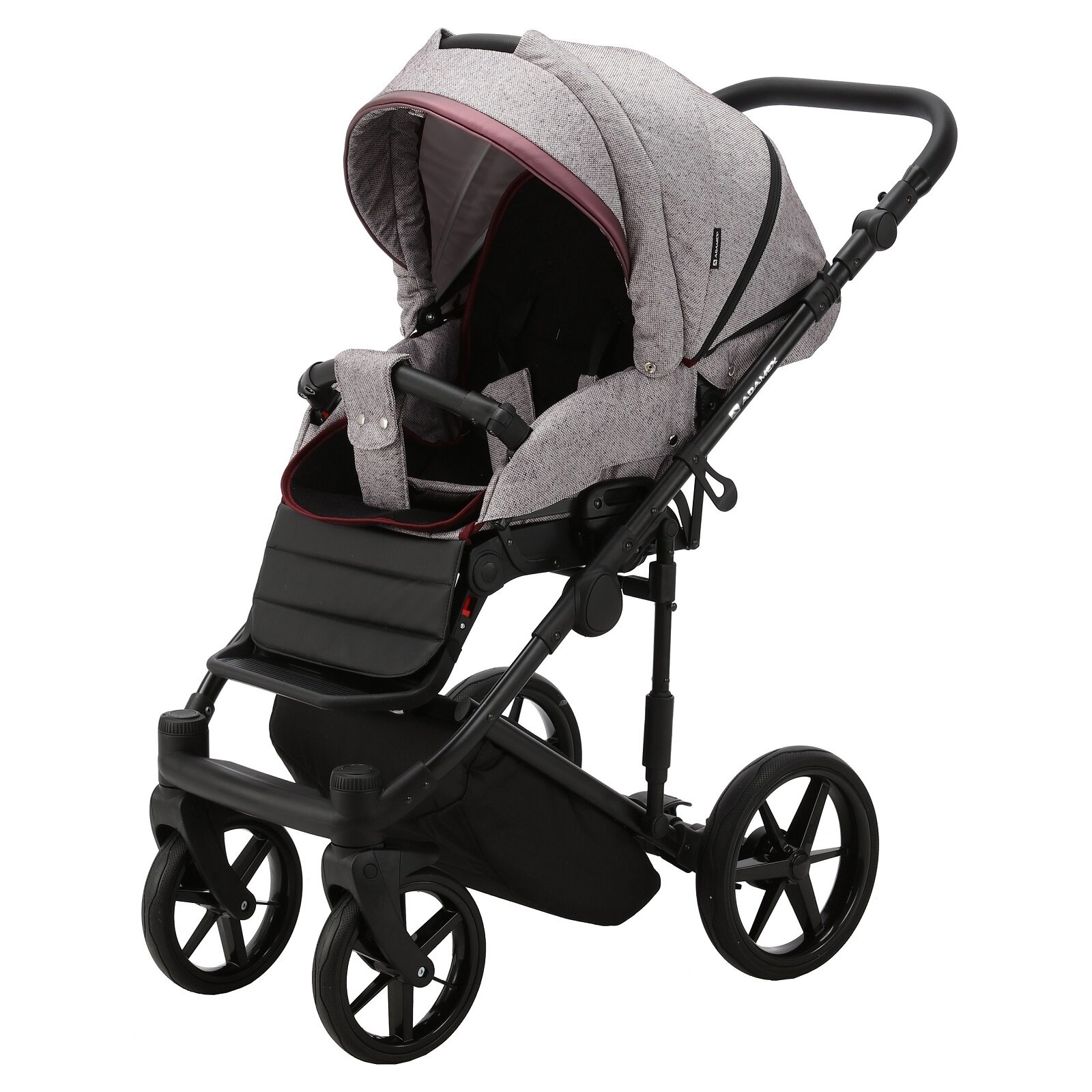 Коляска универсальная Adamex RIMINI LUX 2 в 1, RI-40 -серо-розовая рогожка, бордовая кожа, сиреневая вставка: сравнение цен, характеристики, фото, актуальное наличие и цены.