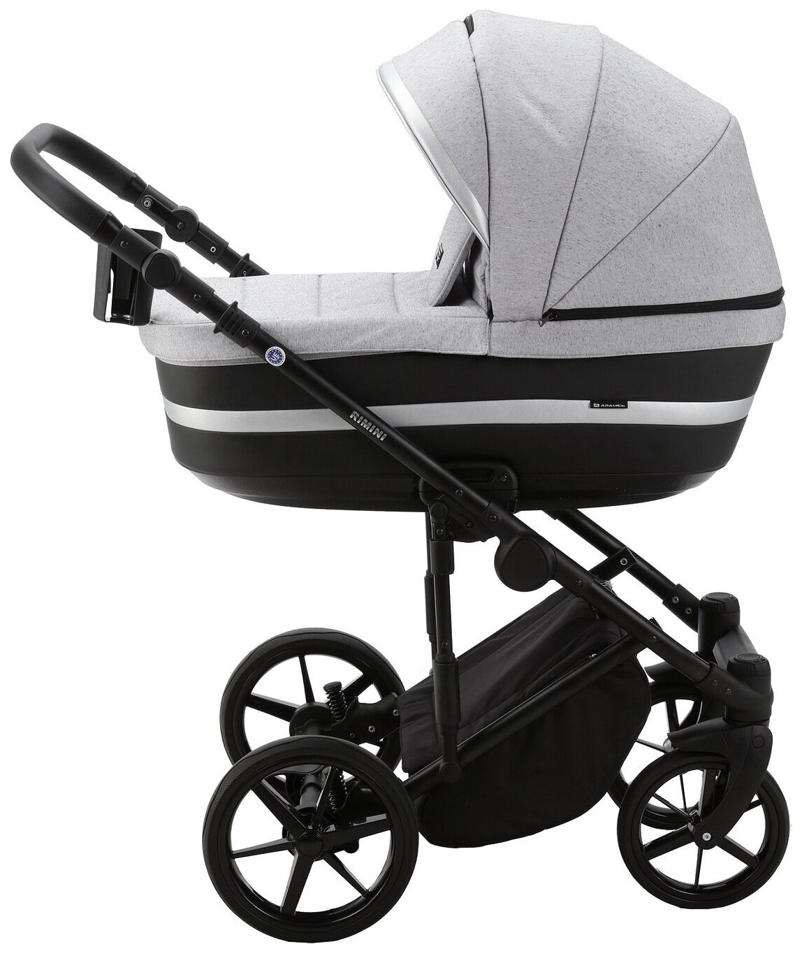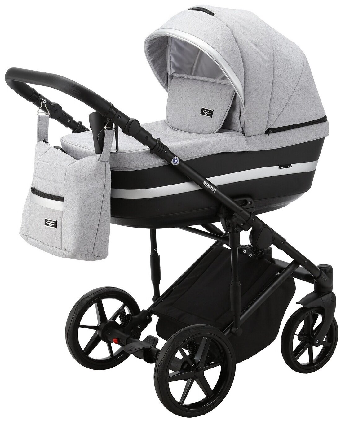 Коляска универсальная Adamex RIMINI LUX 3 в 1, RI-13 — светло-серая, черная кожа, серебристая вставка: сравнение цен, характеристики, фото, актуальное наличие и цены.