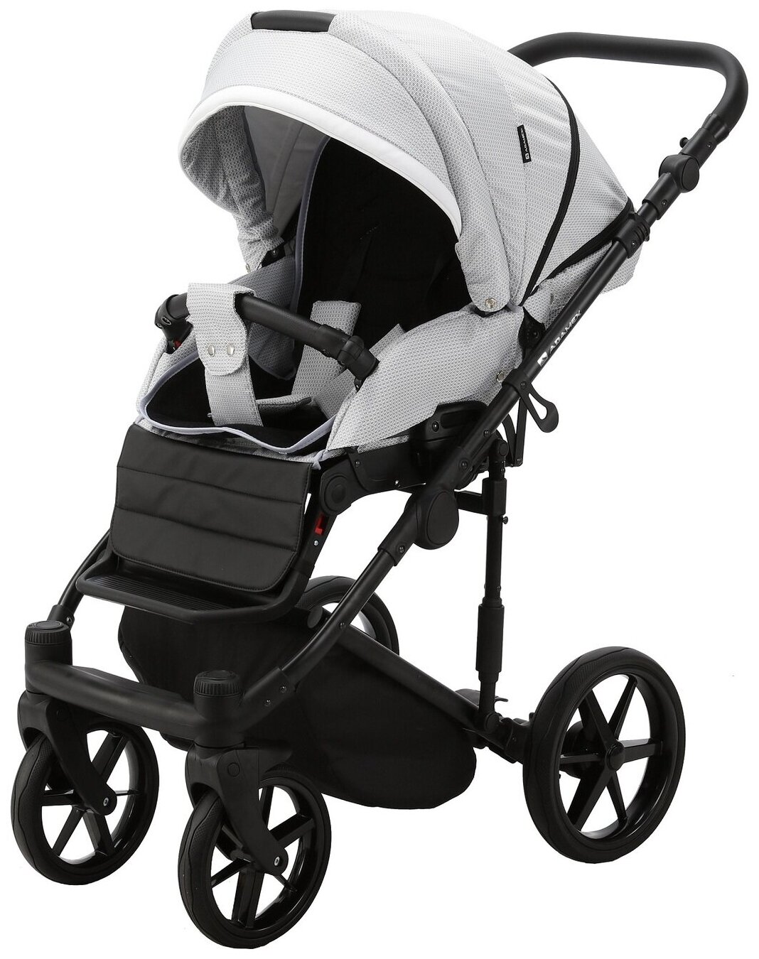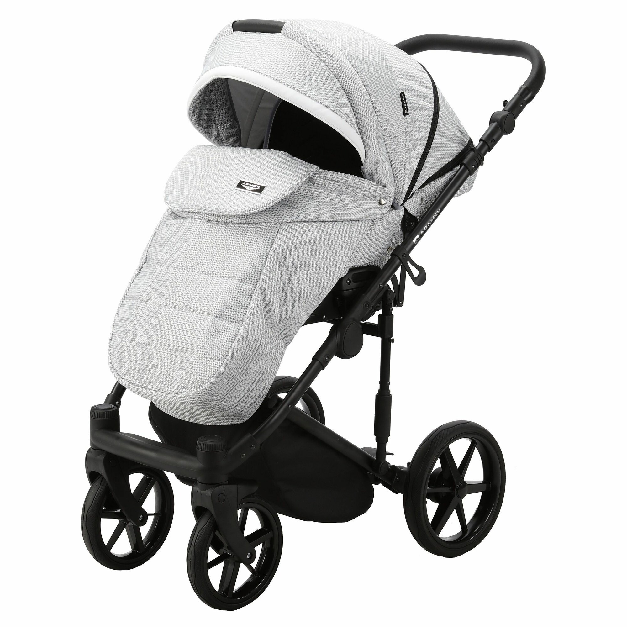 Купить Коляска универсальная Adamex RIMINI LUX 3 в 1, RI-29 — бело-черная рогожка, черная кожа, белая вставка с доставкой по всей России.