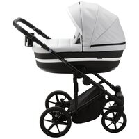 Коляска универсальная Adamex RIMINI LUX 3 в 1, RI-29 — бело-черная рогожка, черная кожа, белая вставка: сравнение цен, характеристики, фото, актуальное наличие и цены.