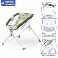 варианты использования: колыбель, шезлонг; 3-х точечные ремни для пристёгивания малыша; сетчатые вставки по бокам; три уровня наклона спинки; вес 4 кг; число уровней высоты 3