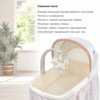 В комплекте: колыбель, съёмный матрасик, наматрасник, капор, электронный мобиль с игрушками, электрошнур с адаптером (американская вилка), тканевая корзина для белья