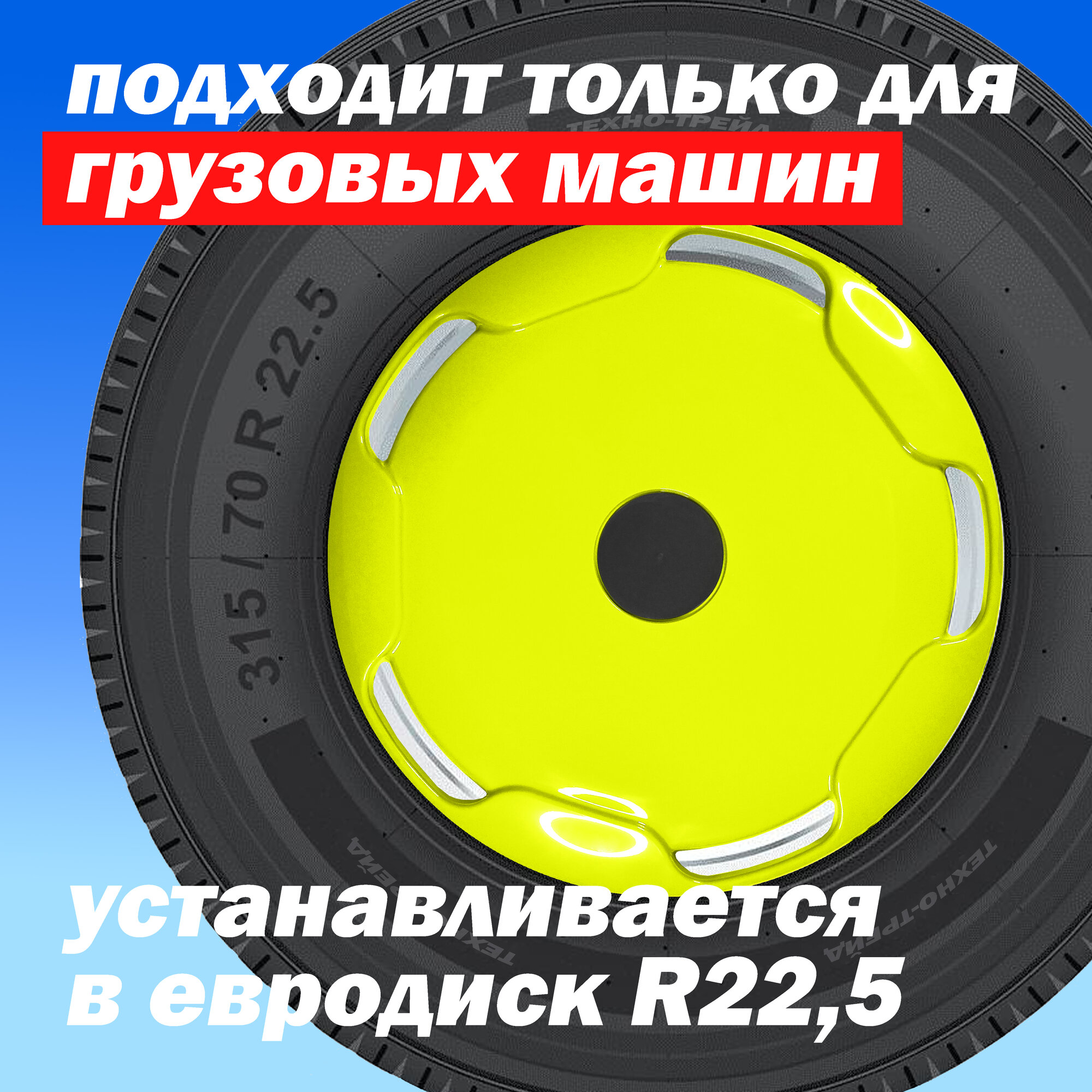 Колёсные колпаки - надёжная защита для грузовых автомобилей, автобусов и коммерческого транспорта. Изготовлены из прочного, легкого и гибкого пластика, что обеспечивает долговечность и удобство использования. Установка колпаков на колёса поможет уменьшить износ, вероятность повреждения и загрязнения колёсных дисков. Колпаки легко крепятся в посадочную канавку с упором в борт штампованного диска и защёлкиваются с помощью пружинной проволоки, которая установлена по периметру колпаков. Пластиковые колпаки на грузовик - универсальные, подходят для большинства грузовых машин со штампованными колёсами типа "евродиск". Они сохраняют первоначальный вид продолжительное время, легки в эксплуатации, не боятся воды и грязи.
