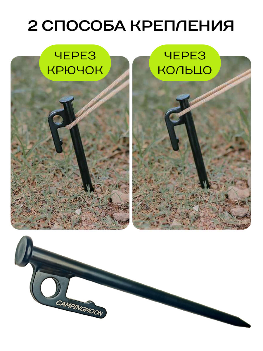 Они обеспечивают надежную фиксацию палатки или тента, предотвращая их случайное перемещение под воздействием ветра или других внешних факторов. У головок есть 2 способа крепления – веревкой или шпагатом через крючок или через специальное отверстие. Подойдут для тех, кто любит путешествия, походы или рыбалку с палаткой. Можно использовать для кемпинга, туризма, а также в качестве садовых и дачных колышек.