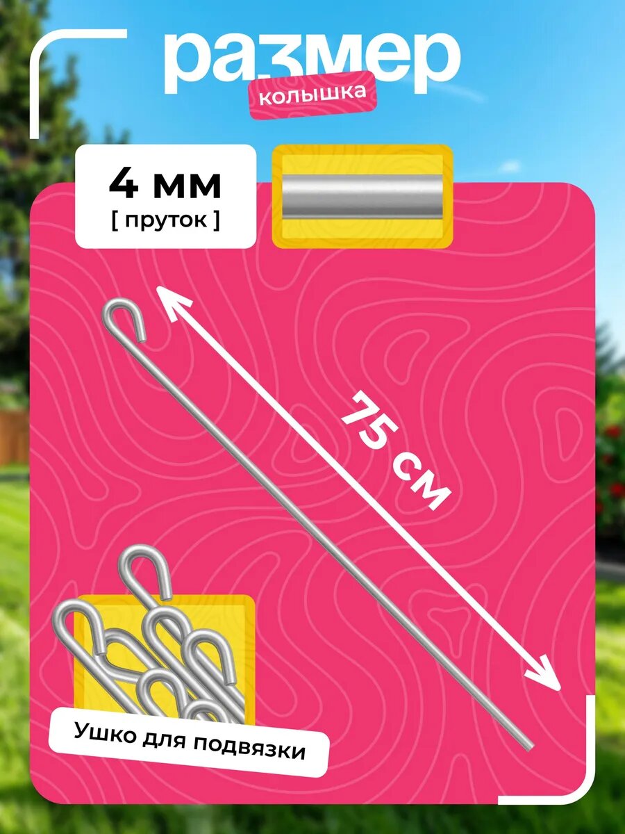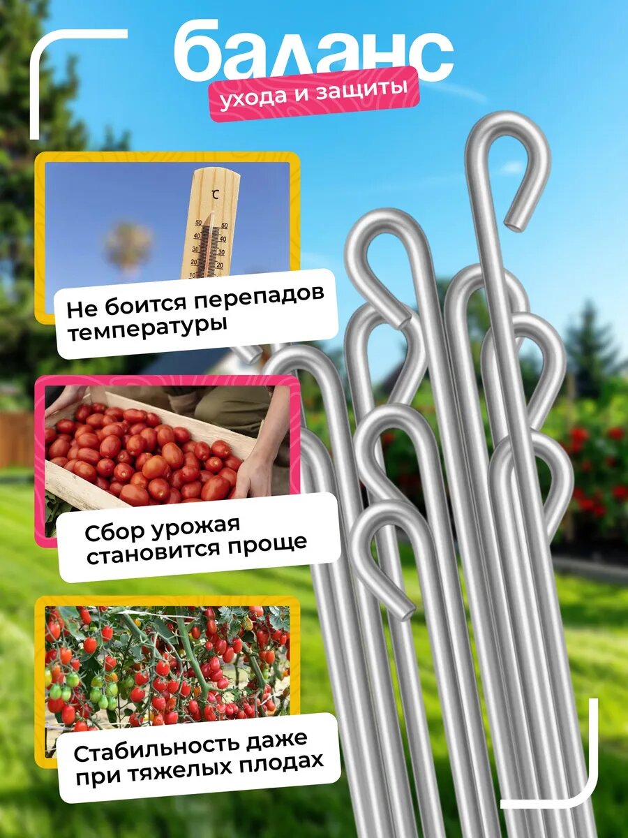 Колышки садовые металлические – это сочетание практичности, опрятного внешнего вида и безопасности в нашем изделии. Широкий размерный ряд, а так же разная комплектность поможет преобразить ваш сад или дачный участок. Изделие выполнено из прочного металлического прутка с антикоррозийным покрытием которое предостережёт опору для растений от сколов и ржавчины. Применение держателям найдется на любом огороде, их можно использовать в качестве тотема для растений, подпорки для смородины или винограда, фиксации укрывного материала. Основной задачей конечно является подвязка растений и различных овощей, это можно сделать при помощи тапенера или различных клипс и фиксаторов. Маленькие размеры можно использовать для комнатных растений в горшках, рассады в мини-парниках или парниках из спанбонда на огороде. Более высокие размеры подойдут для помидор и огурцов. Металлическая конструкция позволяет работать и с кустарниками, вроде малины и с различными цветами, например пионами. Больше не нужно пользоваться палками, вы можете создавать целые шпалеры для фасоли или гороха при помощи колышков. Благодаря эстетичному внешнему виду их можно использовать в качестве фиксаторов вместо скоб. Отличный подарок заядлым садоводам: маме, бабушке, жене как дополнительный садовый инвентарь в дачный сезон. У нас вы сможете подобрать оптимальный размер для любой теплицы. Подвязка растений на колышки увеличивает урожайность в среднем на 20% за счет предотвращения гниения и формирования растениями большего количества соцветий.