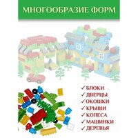 Конструктор "Комби блок" - это недорогой, но качественный аналог дорогих конструкторов отечественного производства. Пластиковый блочный конструктор "Комби-блок" станет отличным подарком для Вашего ребёнка на любой праздник! Наши наборы Комби-блок состоят из разного количества деталей – 50, 100, 150, 200. 300, 400,500.600 или 700 шт. Набор блочного конструктора, изготовленного из безопасного пластика и пищевых красителей. Занятие конструктором - это всегда творческая деятельность, способная раскрыть фантазию, развить мелкую моторику, пространственное мышление, изучить цвета и геометрические фигуры. Предназначен для детей от 3х лет. В набор конструктора входят: платформы с колесами, оконные, дверные рамы, крыши для строительства домов, съемные корпусы машин, фигурки деревьев, модули забора с основаниями. С этим набором ребенок может построить целую серию различных зданий. Конструктор - захватывающая обучающая игра для детей, позволяющая строить объекты различной сложности. Кубики находятся в мешке, в котором удобно будет хранить все детали. Данный блочный конструктор отлично подойдёт для девочек и для мальчиков. В Наборе детали от 3 до 9 см разной формы и цветов. Обратите внимание, что габариты, вес мешков, а также расцветка игровых деталей могут отличатся!